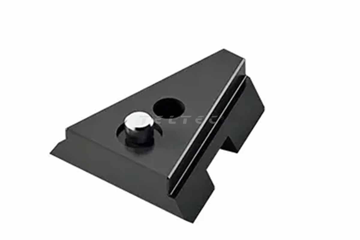 Der Vinten Mini V Wedge ist ein schwalbenschwanzförmiger Zubehörkeil. Er kann mit der mitgelieferten Schraube in ein 1/4"-20-Gewindeloch geschraubt werden und verfügt selbst über 1/4"-20- und 3/8"-16-Gewinde, um weiteres Zubehör zu befestigen.