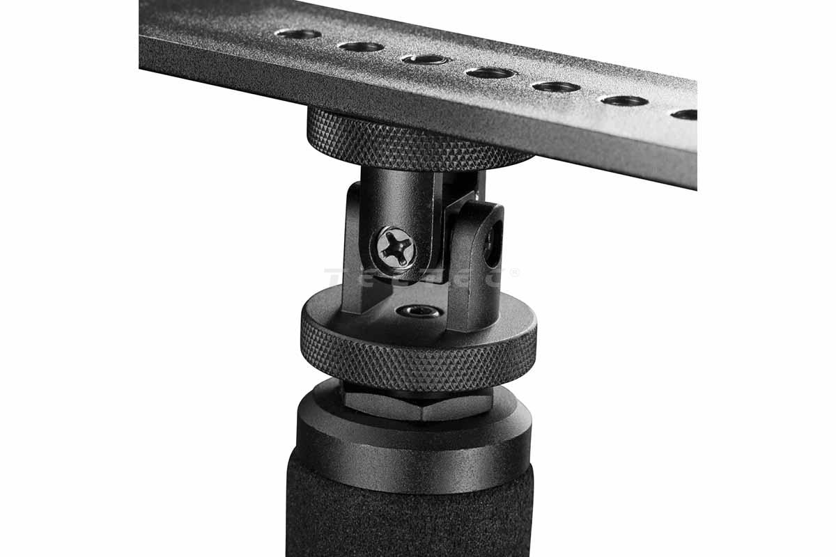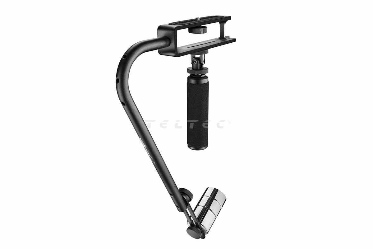 Das Walimex pro Schwebestativ easy Balance four ist eine Steadycam-Lösung für Kompaktkameras. Mit ihr werden Bewegungen der Kameraperson möglichst abgefangen, bevor sie die Aufnahmen verwackeln. Trotz des robusten Materials ist das Schwebestativ leicht zu transportieren, was bei der einhändigen Führung auch sehr wichtig ist. Die Kameraplatte ist gummiert, um Kratzer und andere Schäden an der Kamera zu vermeiden. Der Handgriff ist flexibel montierbar und kann bis zu 160° gedreht werden. Im Vergleich zum Vorgänger wurde hier beim Material auf Aluminium gesetzt.