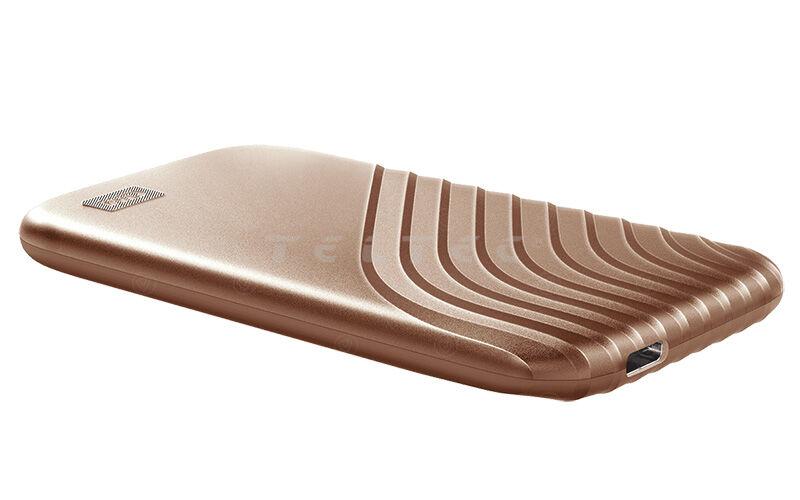 Die WD My Passport SSD 500 GB - Gold ist eine externe SSD in Gold mit 500 GB Speicherkapazität. Mit maximalen Geschwindigkeiten von 1.000 MB/s (schreiben) und 1.050 MB/s (lesen) ist diese Festplatte gut zum Speichern großer Dateien geeignet. Über seine abwärtskompatible USB 3.2 Gen2 Typ C Schnittstelle können Foto, Videos und andere Dateien transferiert und mittels 256-Bit AES Hardwareverschlüsselung passwortgeschützt abgelegt werden. Trotz der leichten und kompakten Bauweise ist diese SSD stoß- und vibrationsfest.