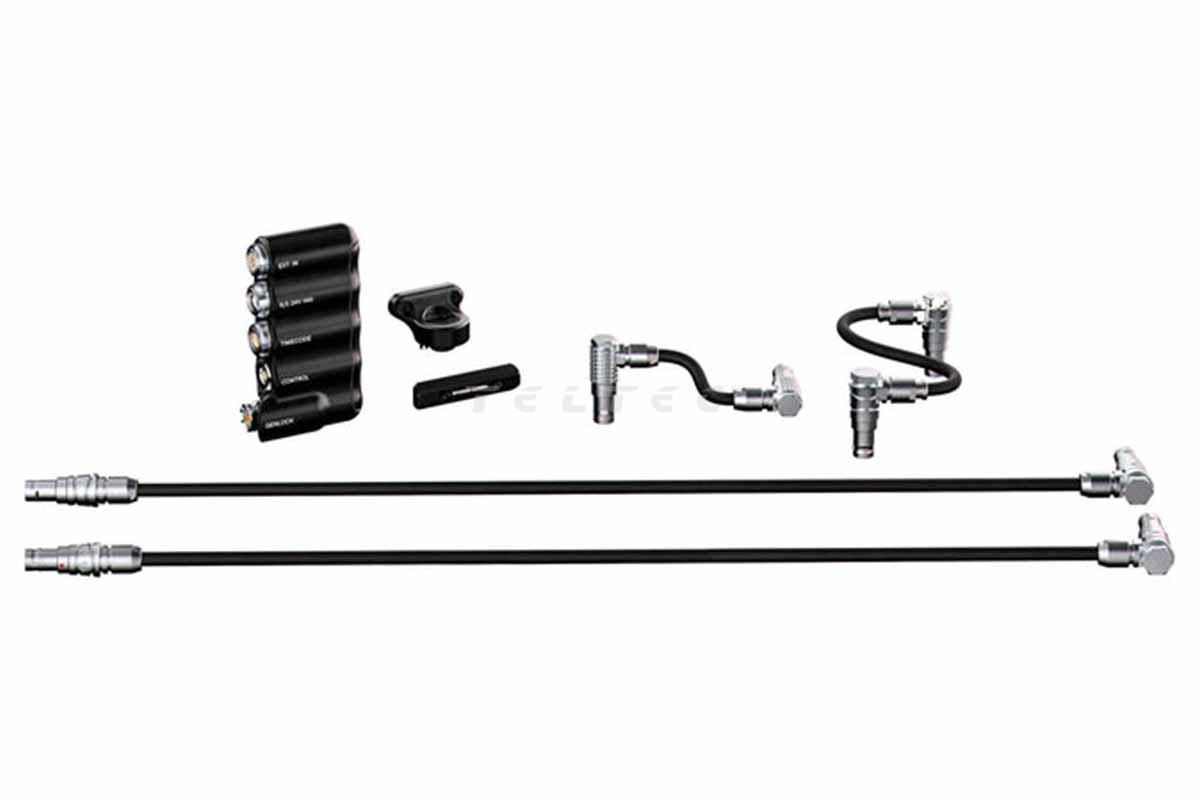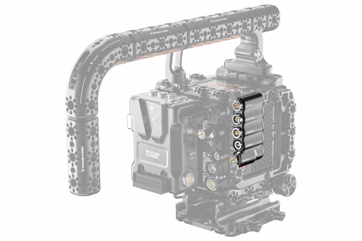 Das Wooden Camera B-Box Kit (RED KOMODO-X) ist eine EXT-Port-Erweiterung um mehrere weitere Ports. Diese sind Run/Stop, Timecode, Control und Genlock. Außerdem verfügt die B-Box über acht M2.5-Gewindelöcher für weiteres Zubehör. Überdies sind im Lieferumfang noch vier EXT-Kabel enthalten, die mit der separat erhältlichen D-Box verwendet werden können, um z.B. über den 3-poligen Run/Stop-Anschluss der B-Box einen 24-V-Stromausgang zu ermöglichen.