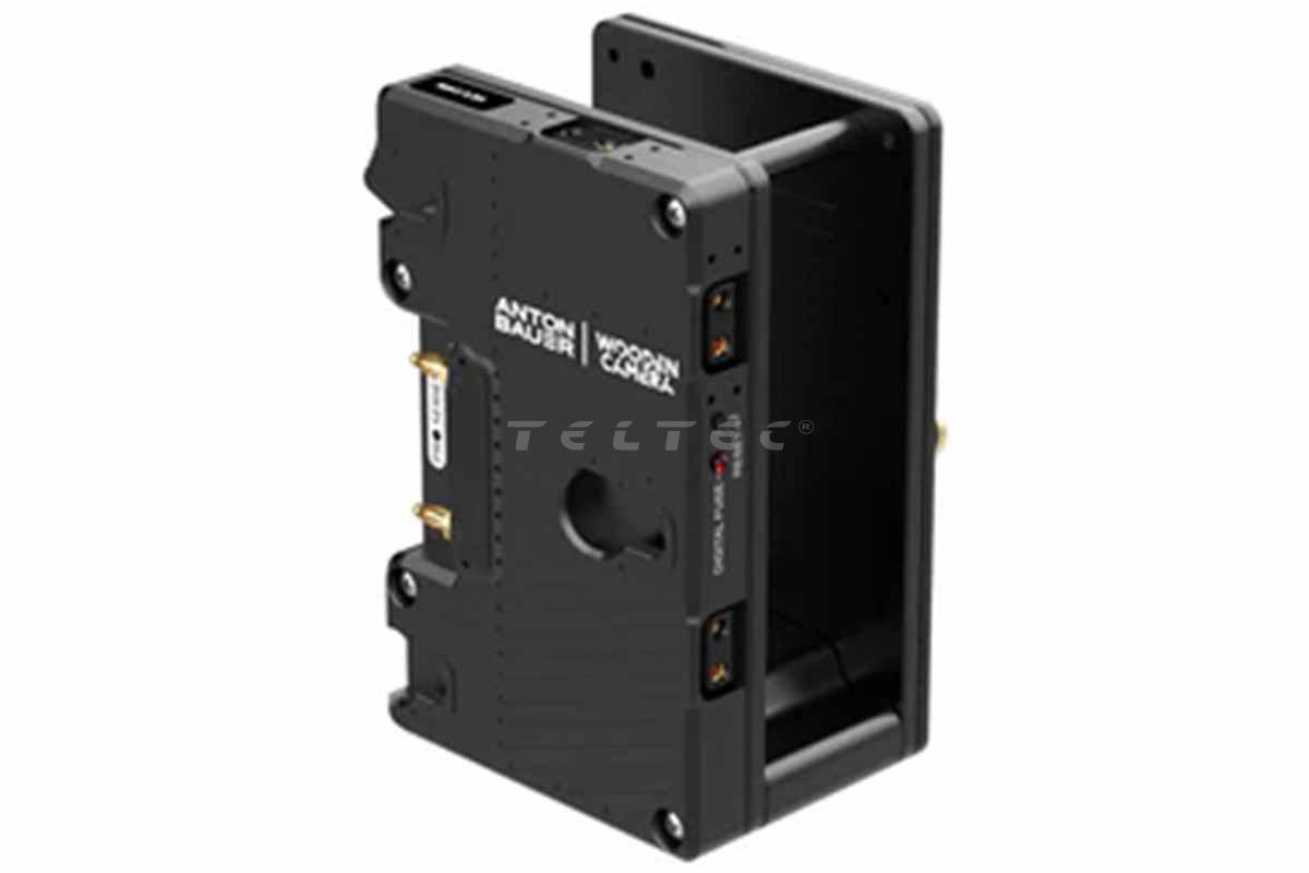 Die Wooden Camera Cradle for Bolt LT TX (Gold Mount) ist eine Halterung mit Gold Mount zur Montage des Senders vom Teradek Bolt an der Kamera. Die hintere (batterieseitige) Batterieplatte verfügt über 3x D-Taps für Zubehörstromversorgung bei Batteriespannung (12-16 V) und eine digitale Sicherung mit Reset-Taste. Sollte der Benutzer den eingestellten Strom für Zubehör überschreiten, werden nur die Zubehörausgänge deaktiviert, während die Kamera normal weiterläuft. Sobald die Stromlast entweder durch Entfernen von Zubehör oder Neukonfiguration reduziert wurde, kann die Reset-Taste gedrückt werden, um die Stromversorgung des Zubehörs wieder zu aktivieren. Der Teradek Bolt LT TX wird über einen 1/4-20 Anschluss an der Unterseite des Geräts in die Halterung montiert. Die Unterseite des Geräts verfügt über zwei Öffnungen – eine für den USB-Zugang und die andere für die Belüftung.