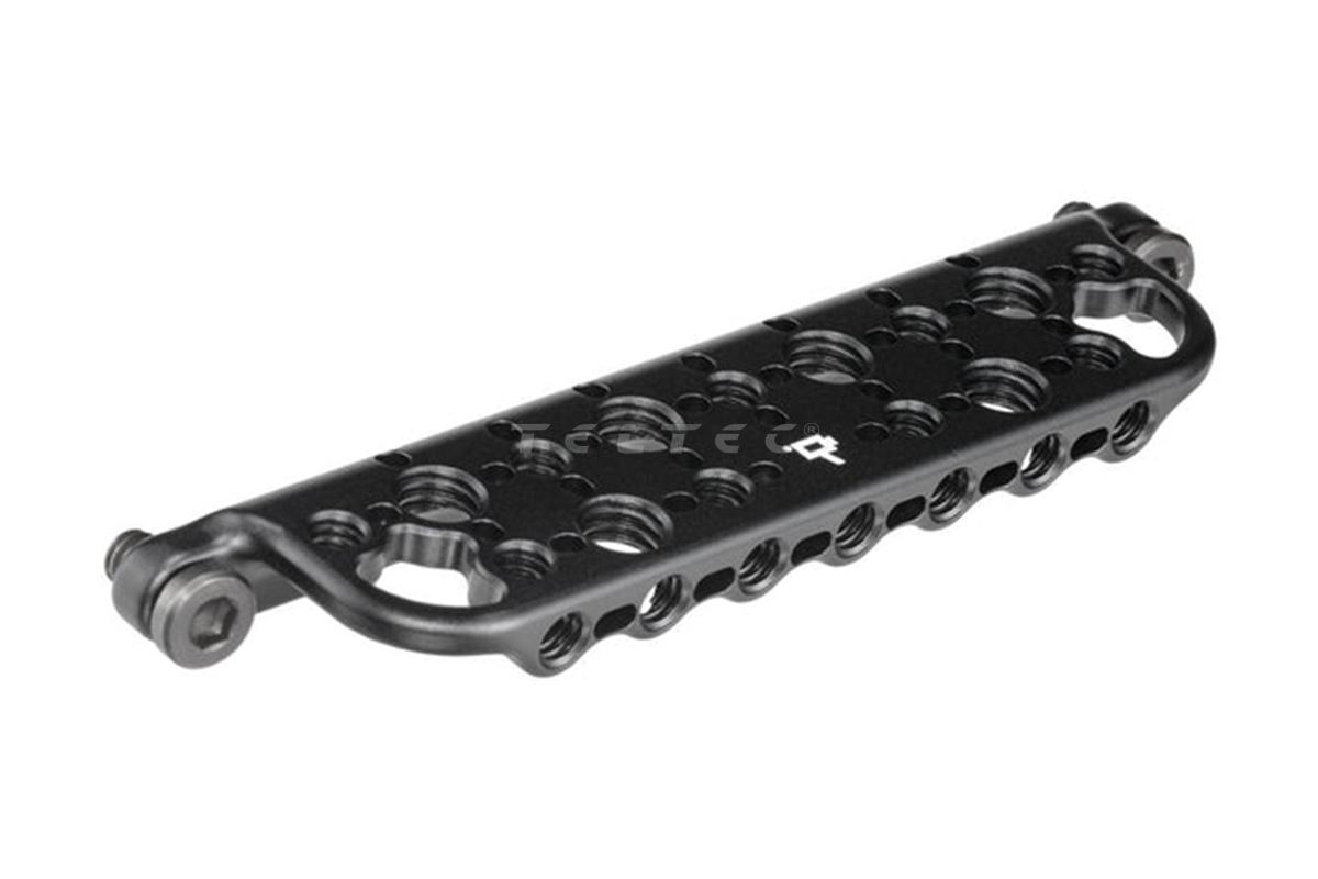 Die Wooden Camera Expansion Cheese Plate (Sony Venice, Venice 2) ist eine kleine Erweiterungs-Platte mit mehreren 1/4" und 3/8" Gewinden, die an der Top Plate angebracht werden kann und somit eine breitere Fläche für die Anbringung weiterer Zubehöre bietet.