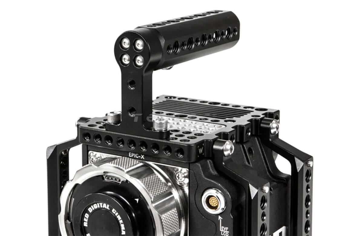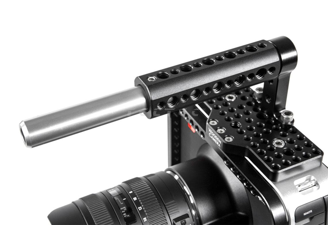 Der Top Handle (Cheese) Handgriff wird mit zwei 1/4-20 Schrauben befestigt, die einen Abstand von 36mm voneinander besitzen, auf der Oberseite der Kamera angebracht, wodurch die Kamera somit leicht transportiert und gehalten werden kann. Der Handgriff besitzt mehrere 1/4-20 und 3/8-16" Gewindebohrungen, um Zubehör an ihm anzubringen und die Öffnung am Ende ist kompatibel mit 19mm Rods, wodurch auch noch zusätzlich ein Rod angebracht werden kann.