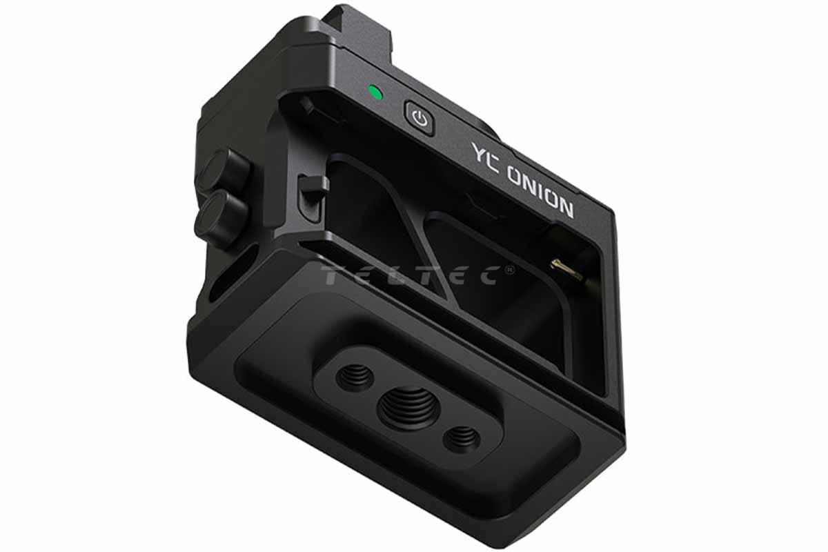 Das YC Onion YC RS2 Power Supply Module ersetzt die mit dem Gimbal mitgelieferte Batterie und verlängert die Lebensdauer des Gimbals. Die Basis verfügt über zwei 1/4"-20 Löcher und ein einzelnes 3/8"-16 Loch, so dass der Gimbal einfach auf einem Standard-Cine-Support-System befestigt werden kann. Eine integrierte LED-Anzeige zeigt an, ob die Batterien voll sind und ob sie gewechselt werden müssen. Die LED-Anzeige leuchtet grün, wenn die Batterien ausreichend geladen sind, blau, wenn der Gimbal in den Ruhezustand geht und rot, wenn versucht wird, den Gimbal zu benutzen.