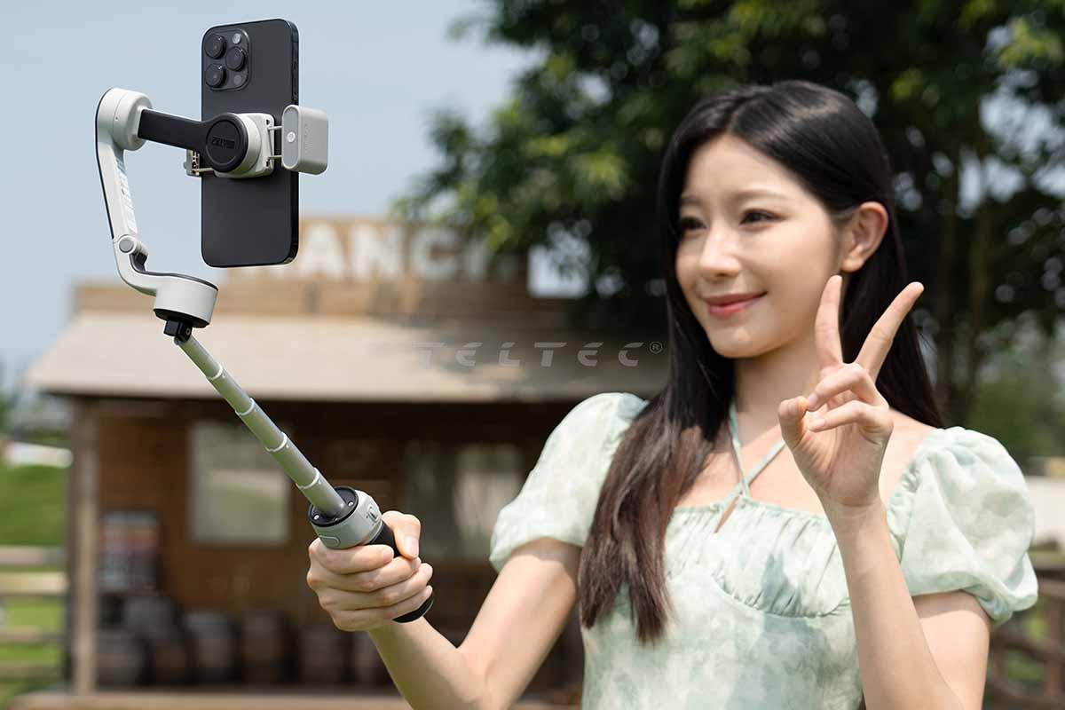 Der Zhiyun Cinepeer CQ5 ist ein Smartphone-Gimbal mit AI Tracker. Er ist mit einer Vielzahl von Handy kompatibel und kann via Sprachsteuerung gesteuert werden.