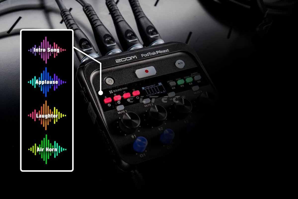 - Vier Sound-Pads für Jingles, Musik oder Effekte