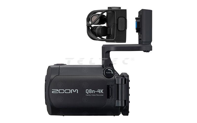 Die Zoom Q8n-4K ist ein 4K-Video- und 4-Spur-Audiorecorder. Er verfügt über ein Objektiv mit f/2,8 und 150° Weitwinkel und kann mittels 5 vorgefertigter Szeneneinstellungen an unterschiedliche Situationen angepasst werden, um ein möglichst gutes Bild zu erzeugen. Dazu kommen 3 Helligkeitseinstellungen und die HDR-Verarbeitung des Materials. Dank des klapp- und drehbaren LCD-Monitors sind auch Selfie-Aufnahmen kein Problem. Über USB als Webcam genutzt, schafft die Q8n-4K eine Auflösung von bis zu 1080p und 48 kHz / 16-Bit. Um externe Mikrofone anschließen zu können, bietet der Recorder zwei XLR-Eingänge mit Phantomspeisung und -20 dB PAD. Dazu kommen 5 Effekte und ein Low-Cut-Filter, um die Aufnahmequalität zu verbessern. Die Videos werden im MOV-Format aufgezeichnet und auf einer separat erworbenen microSD / microSDHC / microSDXC-Karte mit bis zu 512 GB Kapazität gespeichert. Der Akku hält bei 4K30-Aufnahmen ca. 80 Minuten durch, bis er wieder aufgeladen werden muss. Mit dem nicht im Lieferumfang enthaltenen Bluetooth-Adapter (BTA-1) kann die Kamera auch über die iOS-App "Q8n Control" ferngesteuert werden.