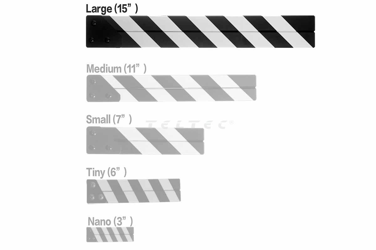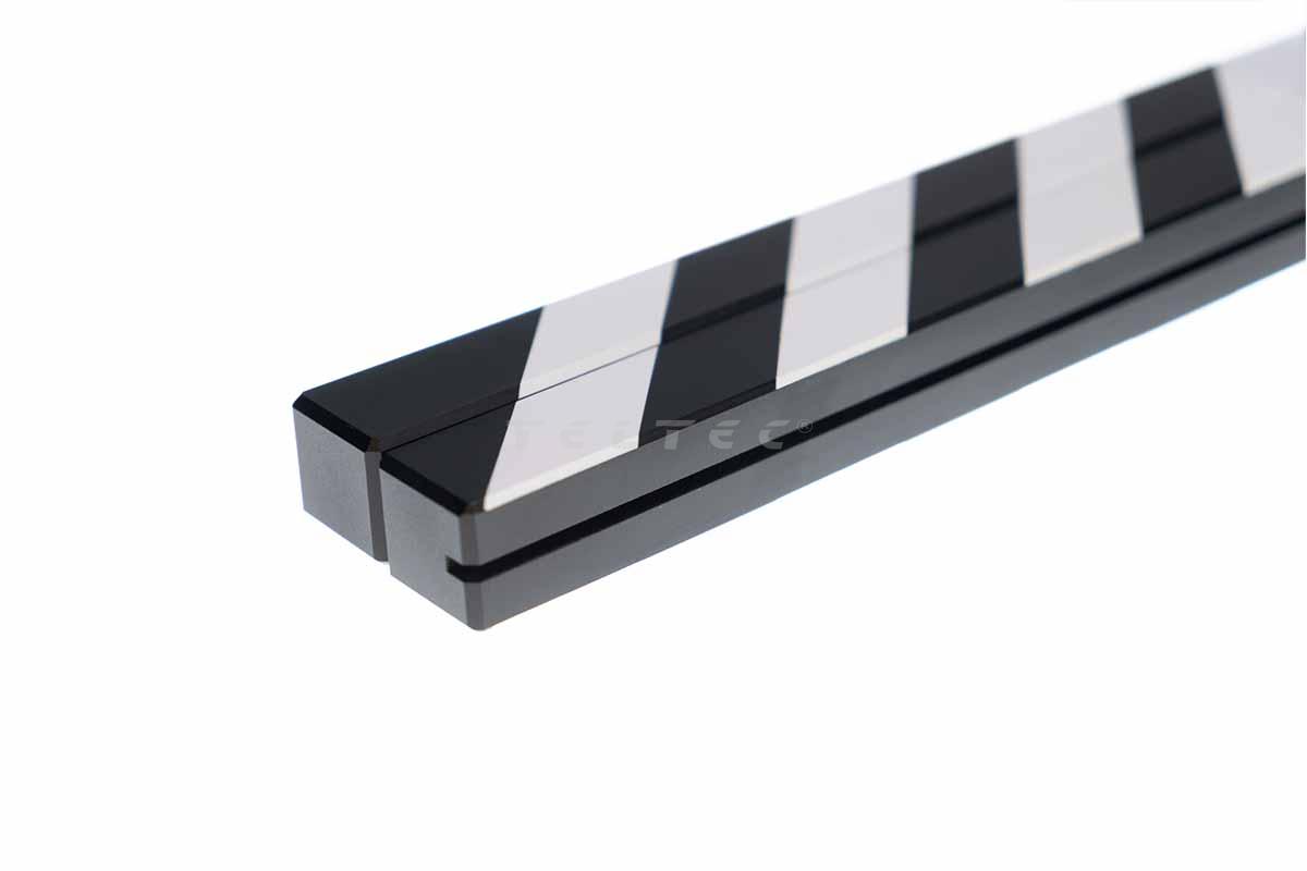 Die Filmsticks ClapperSticks LARGE sind wetterfeste Filmklappen-Sticks aus ABS-Kunstharz. Mit einer Länge von gerade einmal 38 cm sind die ClapperSticks LARGE die größten ihrer Sorte. Sie haben einen 3,5 mm breiten Einschub für Slates. Der Nut- und Federeinsatz ermöglicht es, das Markierungsband beim Messen von Entfernungen zu greifen. Zusätzlich verhindert er das Durchdringen von Licht durch die geschlossenen Sticks und reduziert zudem das seitliche Verschieben.