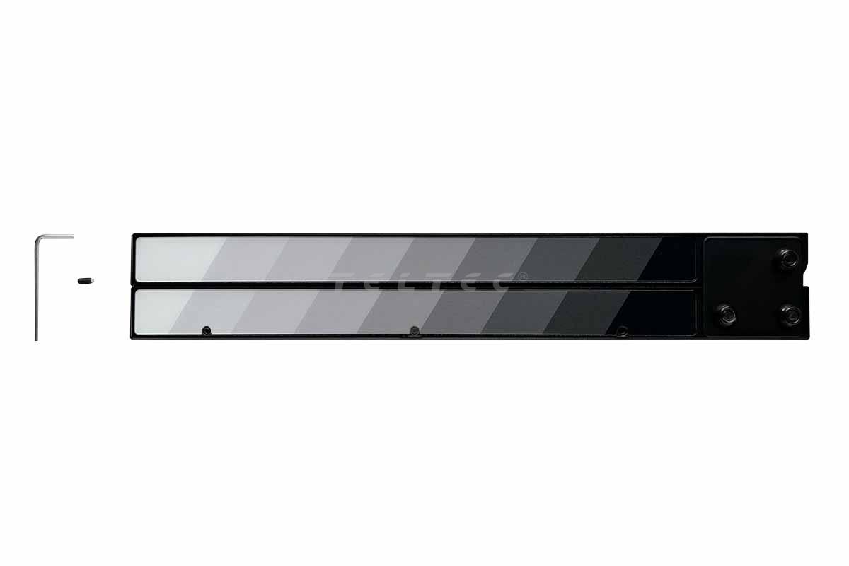 Die Filmsticks Medium All Weather Resin Clapper Sticks with Gray Scale Laminate (FCSM-4130-GS) sind wetterfeste Graustufen-Filmklappen-Sticks aus ABS-Kunstharz mit 28 cm Länge, die auch Gripsticks genannt werden und eine sekundenschnelle Befestigung von Slates ermöglichen. Mittels 1,5 mm Sechskant-Madenschrauben mit nylonbestückten Enden wird für einen festeren und sichereren Halt gesorgt. Sogar ohne Werkzeug lassen sich diese Schrauben fest genug hinein- und auch wieder herausdrehen, um die Slates schnell und einfach wechseln zu können. Dennoch wird ein kleiner 1,5 mm Sechskantschlüssel mitgeliefert. Ideal für Slates der Größe Medium.