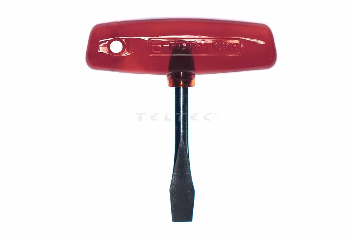 - 1x Filmsticks T-Handle Slotted Screwdriver, in red coloured handle
