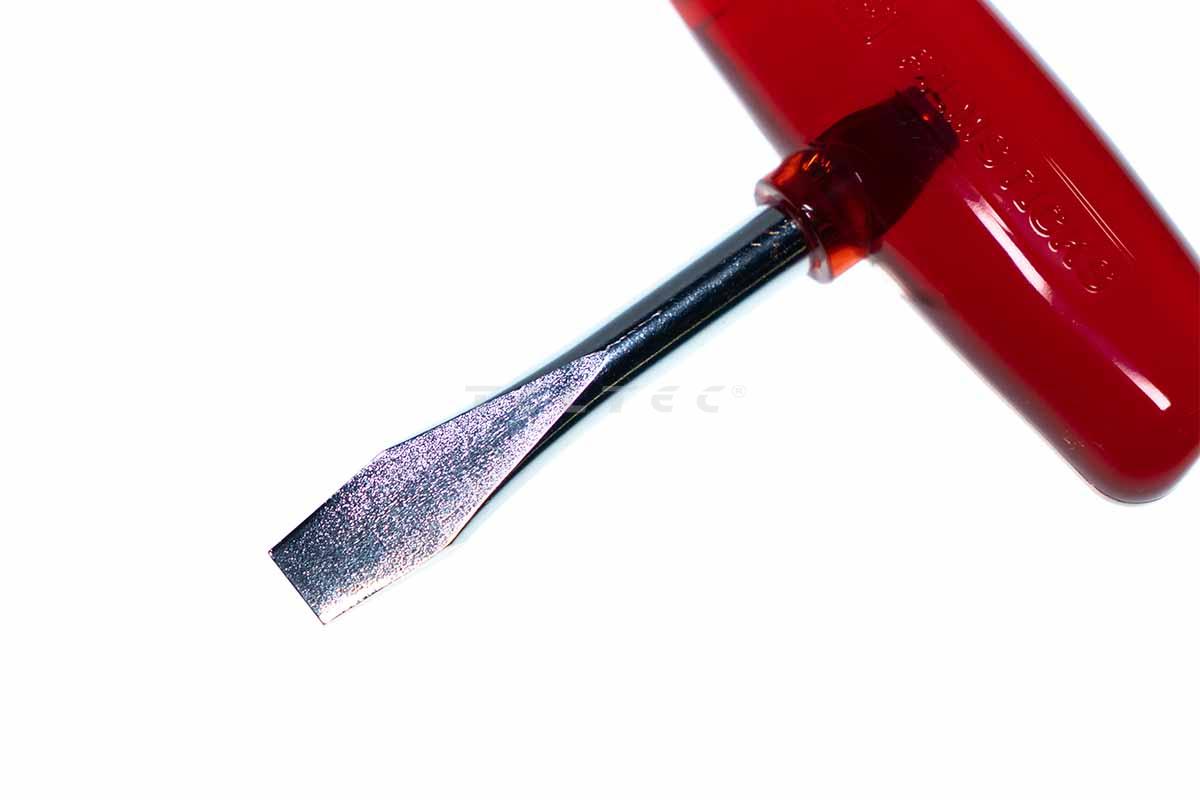 - Schlitzschraubendreher mit T-Griff in transparentem Rot