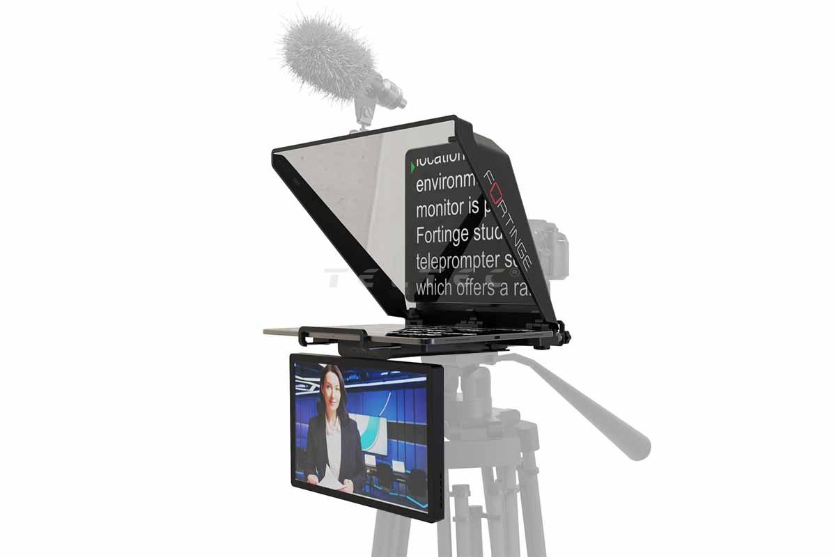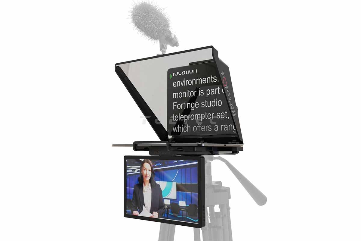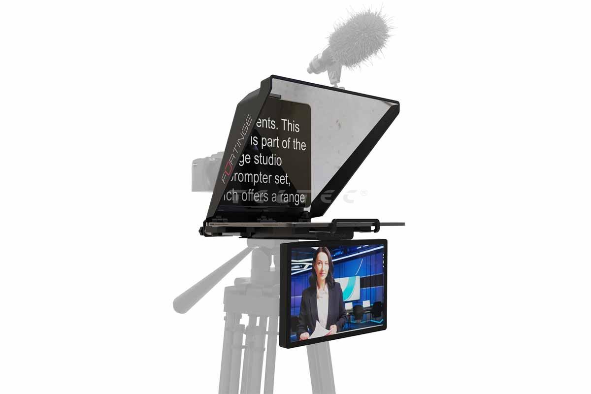 Das Fortinge NOA III ist ein Tablet-Teleprompter für DSLR- bis Mini ENG-Kameras, das sich für Android- und iOS-Tablets in den Größen bis 13" eignet. Der Teleprompter bietet eine Lese-Reichweite von ca. 4,5 Metern und zeichnet sich durch eine einfache Montage, wie auch ein leichtes Design aus. Darüber hinaus ist im Lieferumfang der Bluetooth Hand Controller enthalten. Dieser ermöglicht die Einstellung der Textgeschwindigkeit sowie das Springen zu vorherigen oder nachfolgenden Text sowie zum Seitenanfang oder Ende.