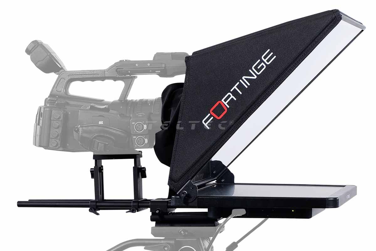 Das Fortinge PROX 15-SDI ist ein 15" Studio Teleprompter-Set mit HDMI, VGA, Composite BNC sowie einem SDI-Ein- und Ausgang, das zur Verwendung mit ENG-Kameras und Handycams mit bis zu 6 kg Gewicht geeignet ist. Ausgestattet mit einem 15" Regular Bright Monitor, wird eine Helligkeit von 400 cd/m² erreicht. Das Elevator-System sorgt für eine optimale Höhe der Kamera, um die optimale Aufnahmeposition innerhalb der Haube einzustellen. Das Stativ zeichnet sich durch ein robustes Design aus, sodass bei der Montage des Teleprompter-Systems auf dem Stativ kein zusätzliches Gegengewicht benötigt wird.