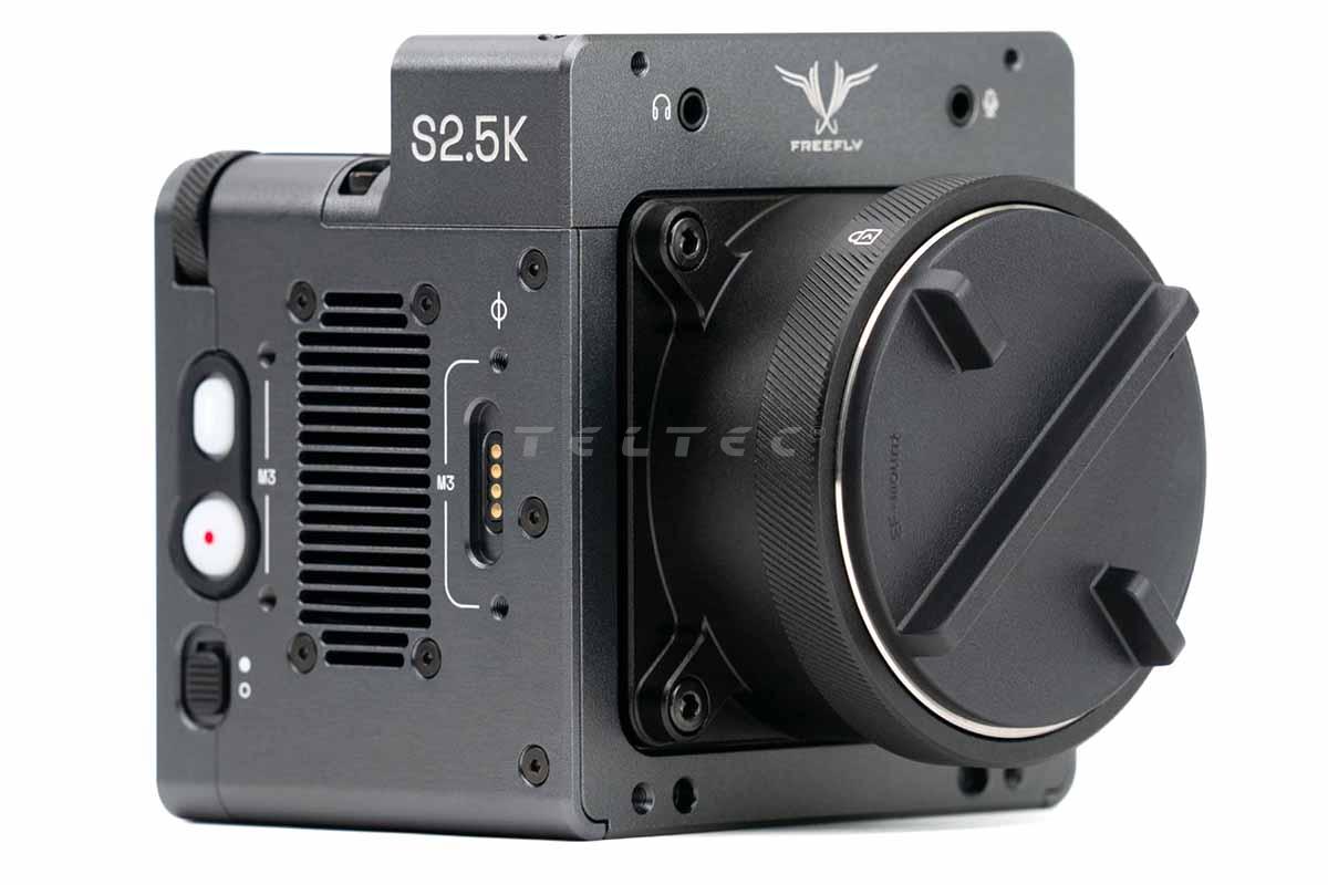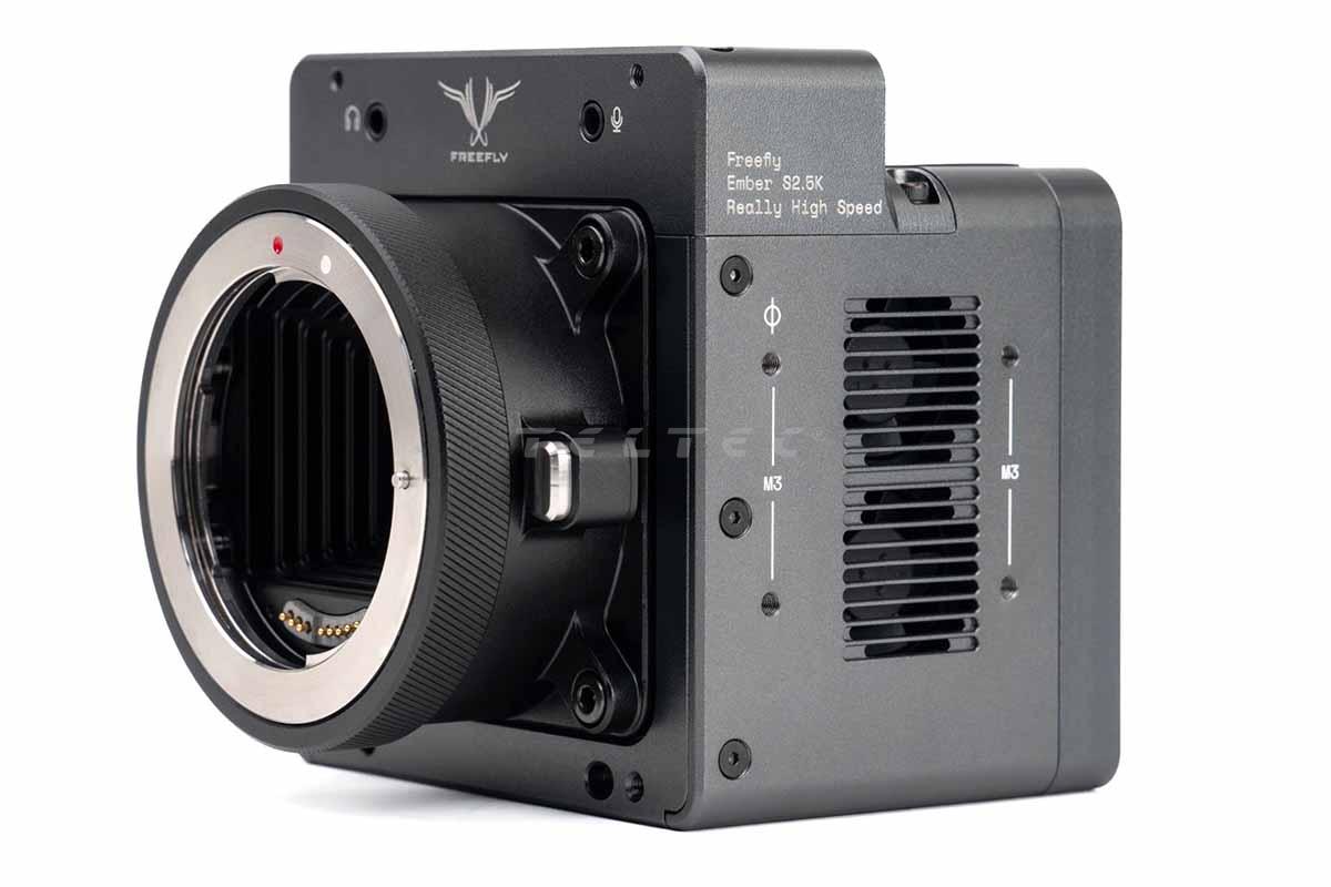 Das Freefly Ember S2.5K ist eine Hochgeschwindigkeitskamera mit einem aktiven EF-Mount und einer integrierten pSLC-SSD, die eine Kapazität von 2,56 TB bietet. Neben der Daueraufzeichnung, gibt es die Möglichkeit Dank eines benutzerdefinierten Auslösers, Vor- und Nachlaufzeiten individuell von 1 Sekunde bis zu 2 Stunden, einzurichten. Dabei ist die Aufnahmezeit lediglich durch die Speicherkapazität der SSD begrenzt. Ember 2.5K bietet einen iOS- und MacOS-basierten App-Workflow mit Live-App-Vorschau und ist zudem mit ProRes kompatibel. Die Ember S2.5K ermöglicht Aufnahmen in 2.5K mit bis zu 2.777 fps. Der Dynamikumfang der Kamera beträgt 11 Blendenstufen.