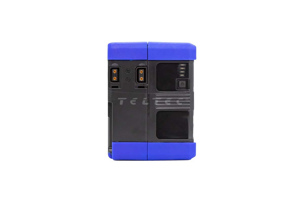 Der FXLion V-Mount Akku BP-M300 ist ein Akku aus der Hochleistungsserie mit einer Kapazität von 300 Wh. Er besitzt insgesamt vier D-Tap-Ein- /Ausgänge. Über diese kann der Akku auch geladen werden und er verfügt über einen USB-A-Ausgang. Der V-Mount Akku wurde für äußerst robuste Anforderungen ausgelegt. Selbst ein Sturz aus bis zu 6 Metern Höhe beeinträchtigt nicht seinem ursprünglichen Betriebszustand. Gummi-Ecken schützen den Akku zusätzlich vor mechanischen Schäden.