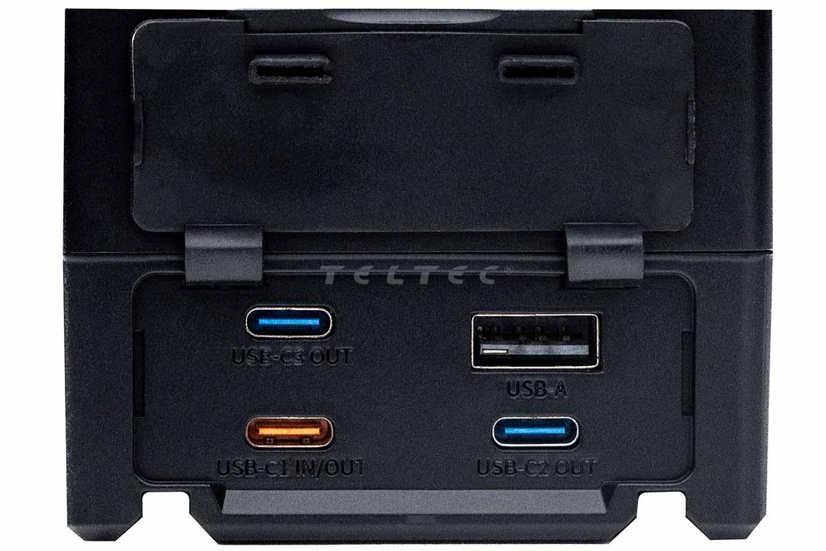 - 1x USB-C PD100W In/Out, 2x USB-C 18W Outputs, 1x USB-A Fast Charging, 2x D-Tap I/Os