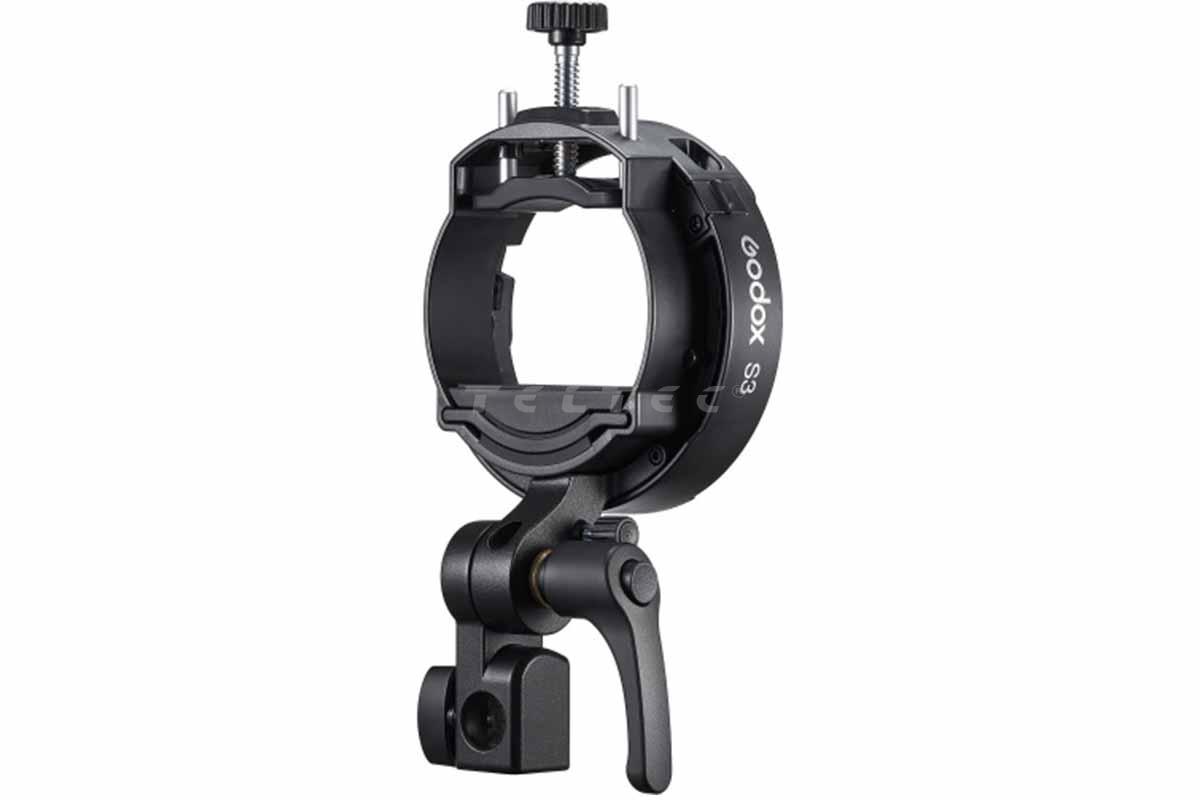 Der Godox S3 Blitzgeräte-Stativhalter ist eine universelle Blitzschiene und gleichzeitig ein Adapter für eine Vielzahl von Lichtformern mit Bowens Mount, von Softboxen und Reflektoren bis hin zu Snoots. Der Klemmabstand ist von 3,5 bis 6,4 cm verstellbar und somit für verschiedene Größen von Aufsteck- und Außenblitzen mit rundem oder auch eckigem Gehäuse geeignet. Ein Silikonpad mit Gitterstruktur schützt das Blitzgerät vor Verrutschen. Für eine flexible Ausleuchtung ist der Adapter um ±90° neigbar und besitzt eine integrierte Halterungen für Stativ und Schirm.
