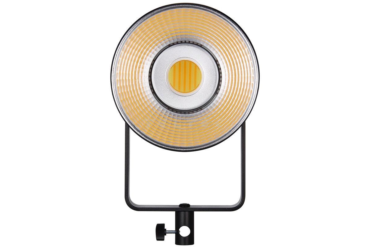 Die Godox SL150 III Bi ist eine dimmbare Bi-Color COB LED-Leuchte mit 160 Watt Leistung. Sie bietet eine Leuchtstärke von bis zu 80.400 Lux (5.600 K/1 m/mit Reflektor), welche von 0 bis 100 % stufenlos dimmbar ist, um stets genau die richtige Beleuchtung zu haben, die gerade benötigt wird. Im Gegensatz zur normalen Version der SL150 III, welche nur Kontrolle über die Leuchtintensität ermöglichte, gibt die Bi-Color Version außerdem noch die Freiheit, die Lichtwärme anzupassen. Generell gibt die SLIII (Bi)-Reihe Farben echtheitsgetreu wieder und liefert natürliche Ergebnisse. Der eingebaute Lüfter lässt sich jederzeit in den Ruhemodus versetzen, damit er in ruhigen Szenen nicht stört. Die Godox SL150 III Bi bietet zudem noch eine Vielzahl an Lichteffekten. Dank der U-förmigen Halterung ist es möglich, den Leuchtkörper je nach Bedarf um 360° zu rotieren. Durch den Bowens-Mount ergeben sich außerdem noch viele weitere Möglichkeiten, die Leuchte mit Zubehör auszustatten.