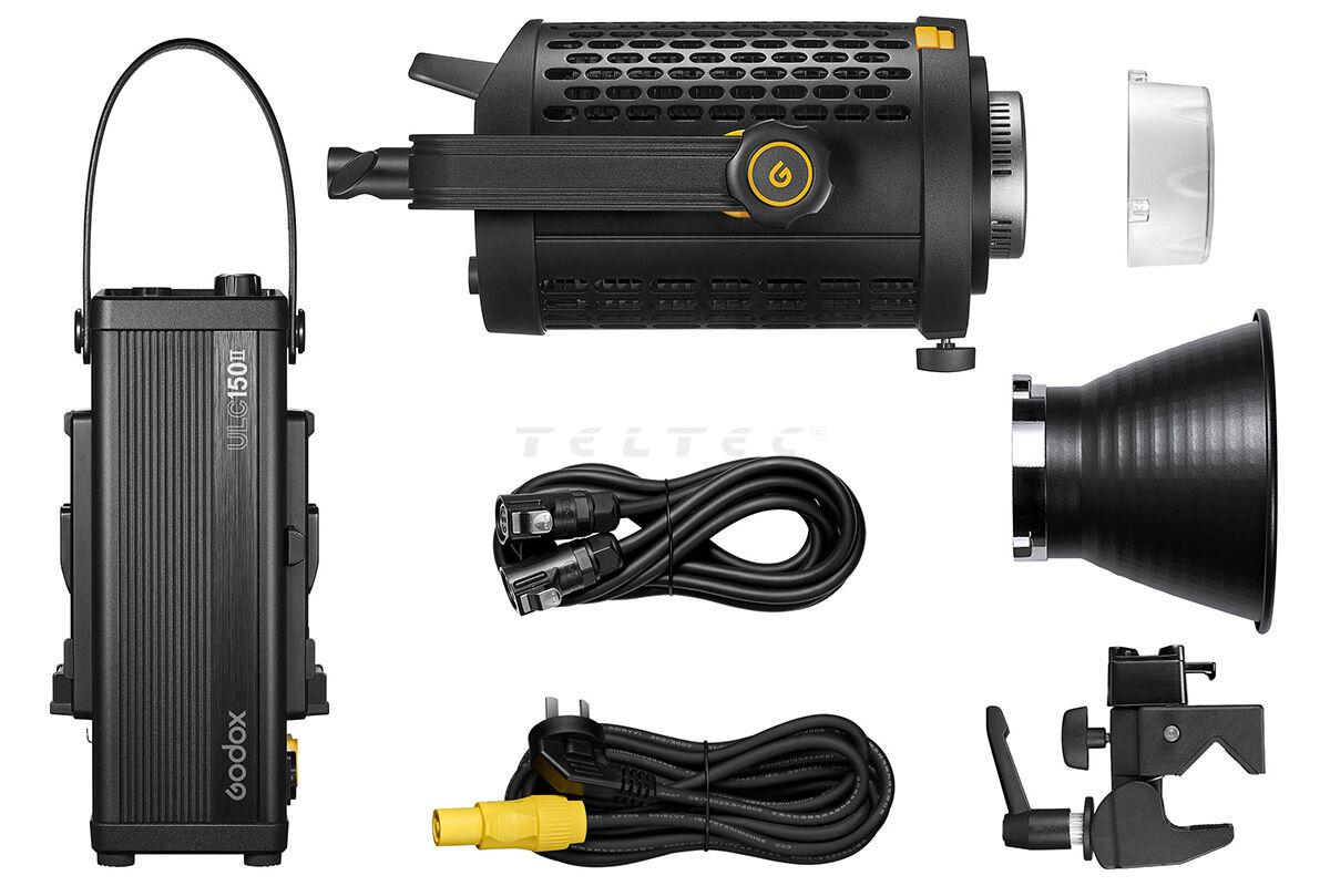 Die Godox LED UL150ll ist eine dimmbare 160 W LED Leuchte mit einem nahezu geräuschlosem passivem Kühlsystem. Die Leuchte bietet eine Farbtemperatur von 5.600 K bei einem CRI von 96 und einem TLCI von 97. 12 vorprogrammierte Lichteffekte sowie 4 vorprogrammierte Dimmkurven vervollständigen die Ausstattung der Leuchte. Zudem stehen verschiedene Möglichkeiten zur Steuerung zur Verfügung: per DMX, Godox Light App oder der optionalen Godox RC-A6 Fernbedienung. Ausgestattet mit dem Bowens-Mount-Anschluss kann eine Vielzahl an kompatiblem Zubehör montiert werden.