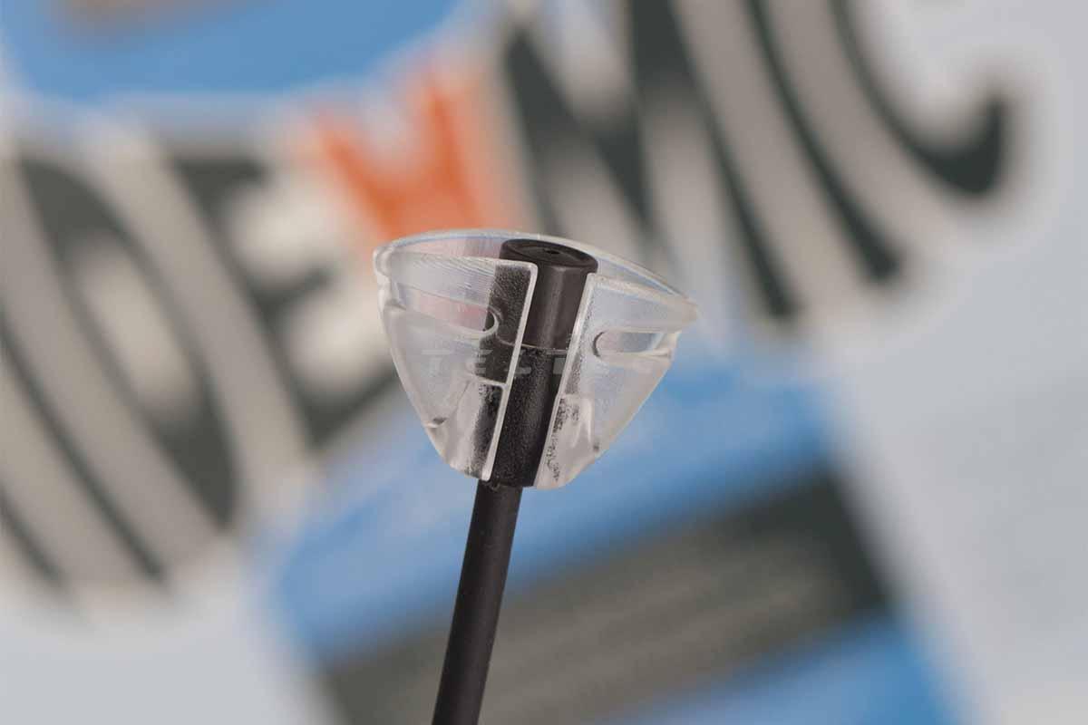 Die Hide-A-Mic Abdeckung für Sennheiser MKE2, einzelner Krawatten-Clip, transparent ist eine einzelne farblose Lav-Abdeckung für Krawatten. Diese Abdeckung ist so konzipiert, dass sie das Lav-Mic an bzw. unter der Krawatte versteckt, ohne Kratz- oder andere Störgeräusche zu verursachen, indem sie den Stoff auf Abstand hält.