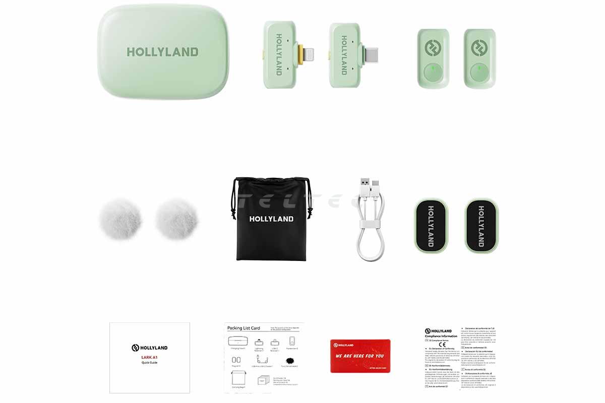 - 1xHollyland LARK A1 Combo Wireless Microphone Mint Green