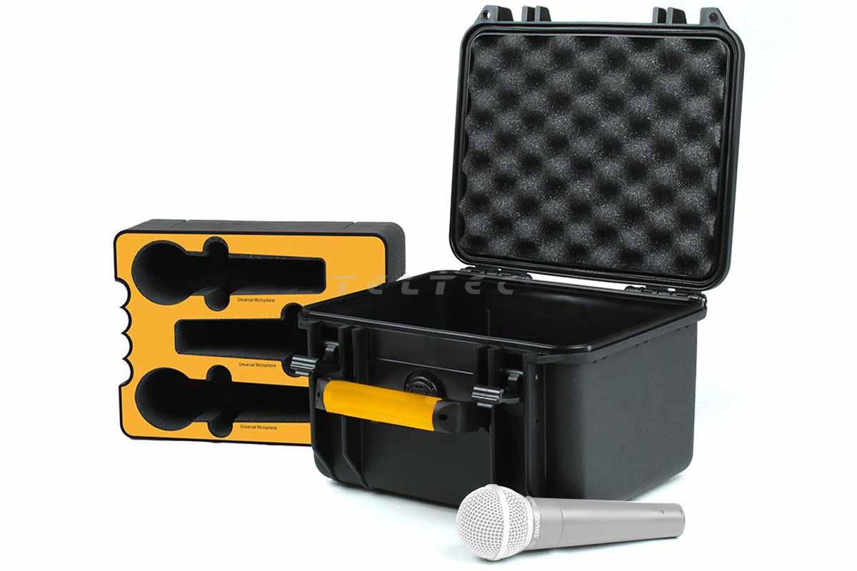 Hartschalenkoffer mit gefrästem Innenleben für 3 Mikrofone