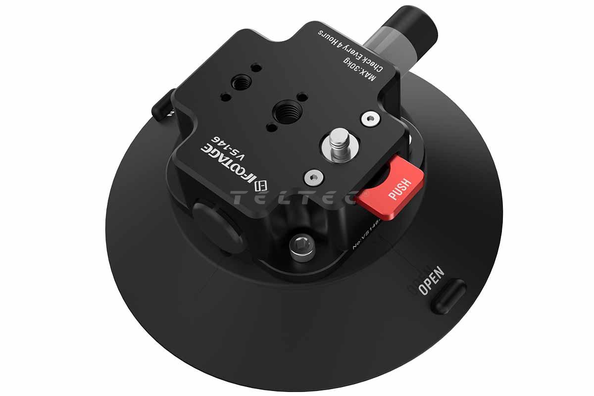 Der iFootage Spider Crab Vehicle Suction Cup VS-146 ist eine professionelle Saugnapfhalterung mit bis zu 30 kg vertikaler Tragkraft. Dank starkem Vakuumverschluss hält er sicher auf glatten oder gewölbten Oberflächen wie Glas – ideal für Fahrzeugaufnahmen und dynamische Kamerasetups. Mit 3/8″- und 1/4″-Gewinde kompatibel, ist er vielseitig einsetzbar für Kameras, Zubehör, Magic Arms und Bowl-Mounts.