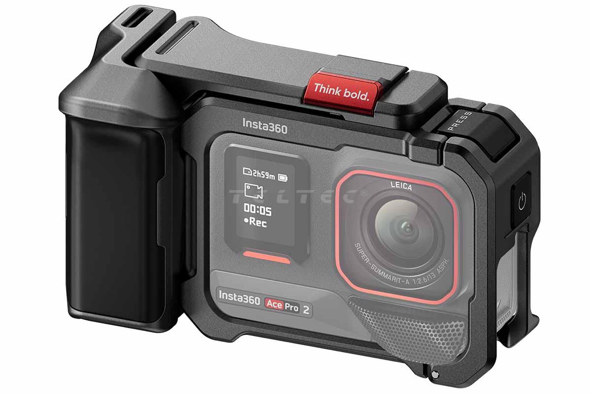 Das Insta360 Ace Pro 2/Ace Pro Xplorer Grip Kit (Dark Gray) umfasst einen Multifunktionsrahmen mit einem Aluminiumgriff, der für zusätzlichen Komfort sorgt und in Kooperation mit Tilta entwickelt wurde. Zudem enthält das Kit eine Zubehörschuh-Kappe sowie eine Zubehörschuh-Aufnahmetaste.