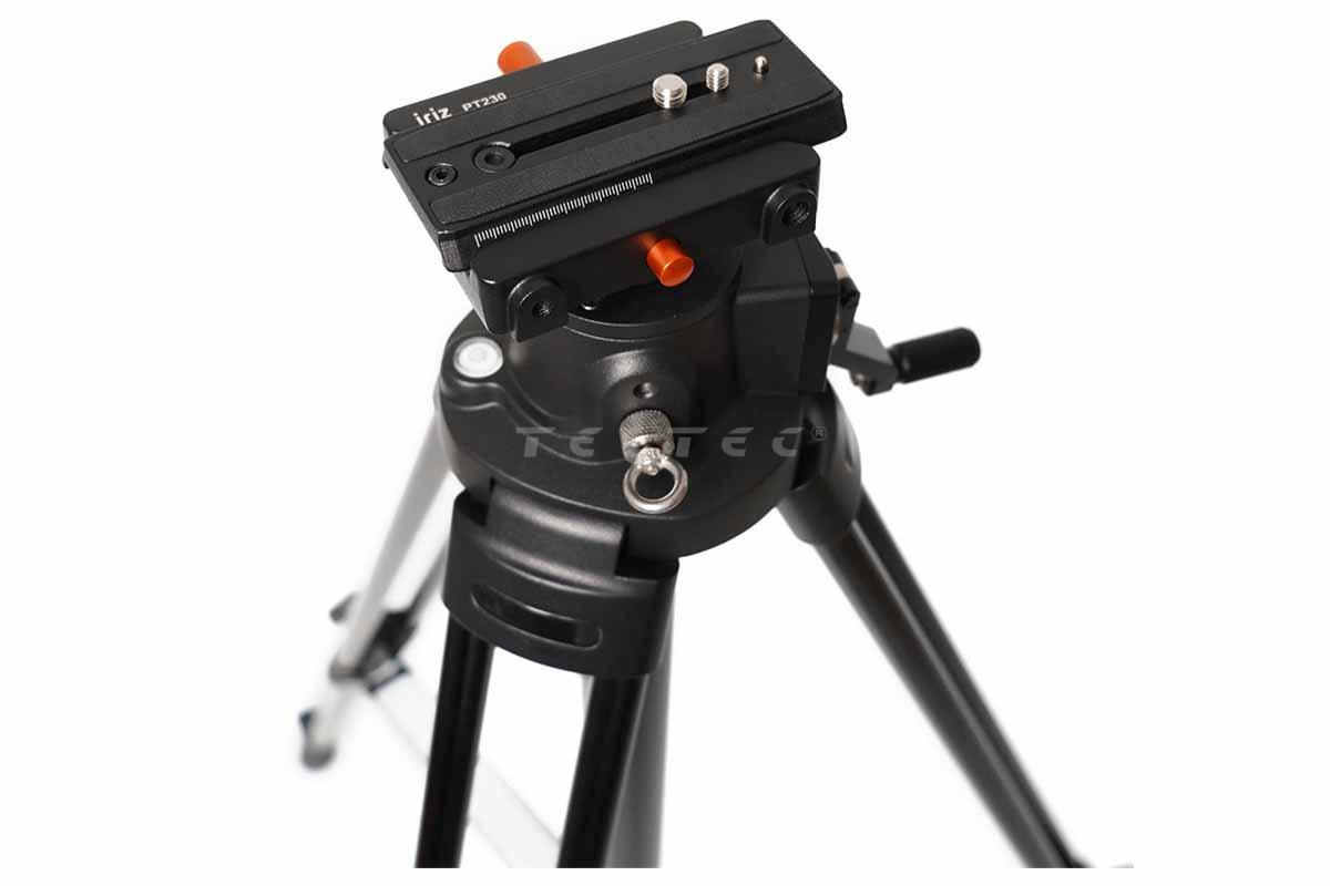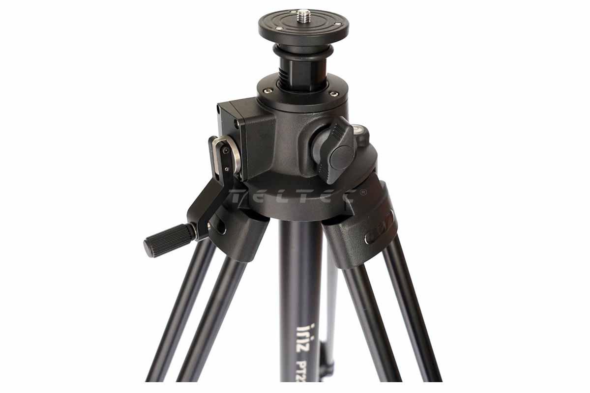 Das iriz PT230 ist ein höhenverstellbares PTZ-Kamerastativ mit einem Mittelsäulenhub. Die Traglast des Stativs beträgt bis zu 16 kg, die Höhe lässt sich zwischen 84 cm - 230 cm anpassen. Das Stativ bietet eine integrierte Libelle sodass eine genaue horizontale Ausrichtung des Stativ möglich ist. Rutschfeste Gummifüße mit Kugelgelenk sorgen für einen stabilen Stand. Die im Lieferumfang enthaltene Steintasche kann mit Gewichten oder Steinen befüllt werden, um das Stativ bei windigen oder unebenen Umgebungen zusätzlich stabilisiert. Mit der optional verfügbaren Adapter-Trageschiene iriz ROD02 können bis zu vier weitere Geräte wie beispielsweise zwei PTZ-Kameras, einem Monitor und einer leichten Flächenleuchte am Stativ montiert werden.
