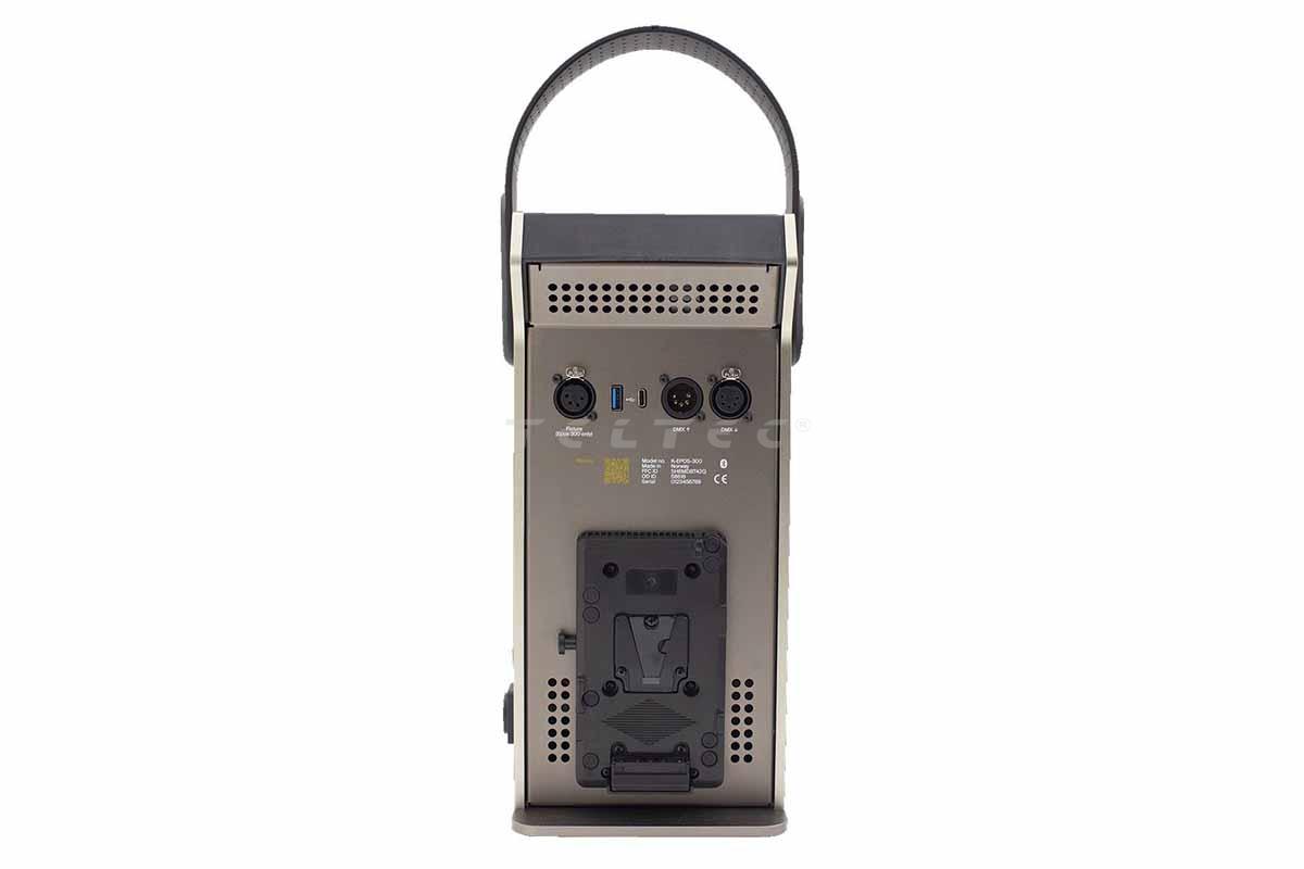 Die Kelvin EPOS-300-V ist eine 300 W RGBACL LED COB Studio-Leuchte mit einer Farbtemperatur von 2.000 K bis 20.000 K und der Six-Color Light Engine die für eine äußerst präzise, konsistente und dynamische Beleuchtung sorgt. Die Leuchte ist von 100 % - 0 % dimmbar und bietet einen hohen CRI-Wert mit 98 sowie einen hohen TLCI-Wert mit 99. Die EPOS-300-V lässt sich per Kelvin Narrator App für iOS/Android per Bluetooth, Onboard über das Steuergerät, per DMX , Lumen Radio oder Wireless DMX steuern. Der Bowens-Mount mit der eigensentwickelten Kelvin MagTech bietet die Möglichkeit Zubehör wie Diffusor magnetisch an der Front der Leuchte anzubringen. Das 5" TFT-LCD Touchscreen zeigt beispielsweise die Farbtemperatur, die Intensität, die Sättigung an. Die Stromversorgung der Kelvin EPOS-300-V erfolgt über ein PowerCON AC Netzteil oder über zwei V-Mount Akkus, wobei die Akkus hot-swappable sind. Zusätzlich im Travel-Kit enthalten ist ein Accessory-Kit AK1 mit Diffusor-Aufsätzen und Umbrella-Kit.