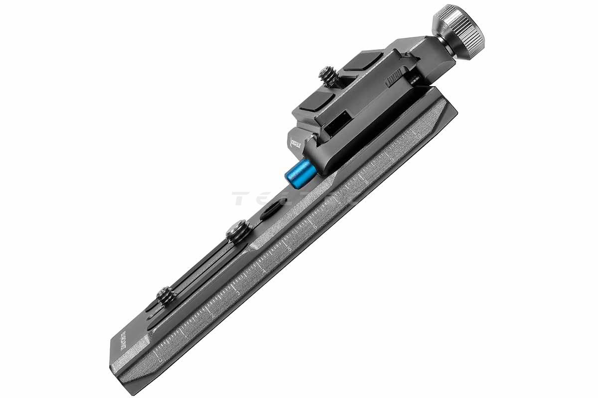 Die Kondor Blue 501/Arca Pivot Kamera-Platte für Ronin - Space Grau (KB-501AP) ist eine Pivot-Kameraplatte für DJI Ronin Hand-Gimbal. Sie kann mit herkömmlichen 501-Stativköpfen verwendet werden und bietet Anti-Rutsch-Sicherheiten sowie die Möglichkeit, die Arca-Aufnahme zu entfernen und als ein eigenständiges Teil zu nutzen. Zudem kann die Platte mittels 1/4"-20-Schrauben in Setups integriert werden. Auch sie kann alleinstehend genutzt werden, um etwa eine Kamera sicher auf weiterem Zubehör anzubringen. Außerdem kann die Arca-Aufnahme gedreht werden, sodass sie entweder parallel oder senkrecht zur Manfrotto-Platte gerichtet ist. Mit dabei ist ein 4-mm-Sechskantschlüssel. Die Skalen sind sorgfältig eingelasert.