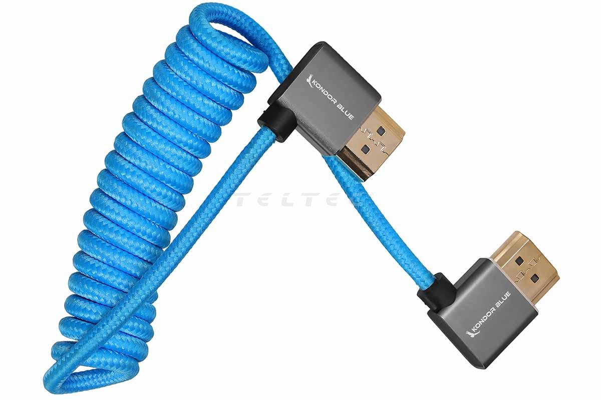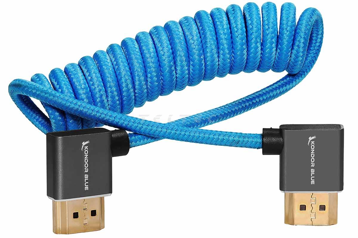 Kondor Blue rechtwinkliges HDMI-Kabel für On-Camera-Monitore, spiralisiert, 30 - 60 cm (KB-FHDMI-12R