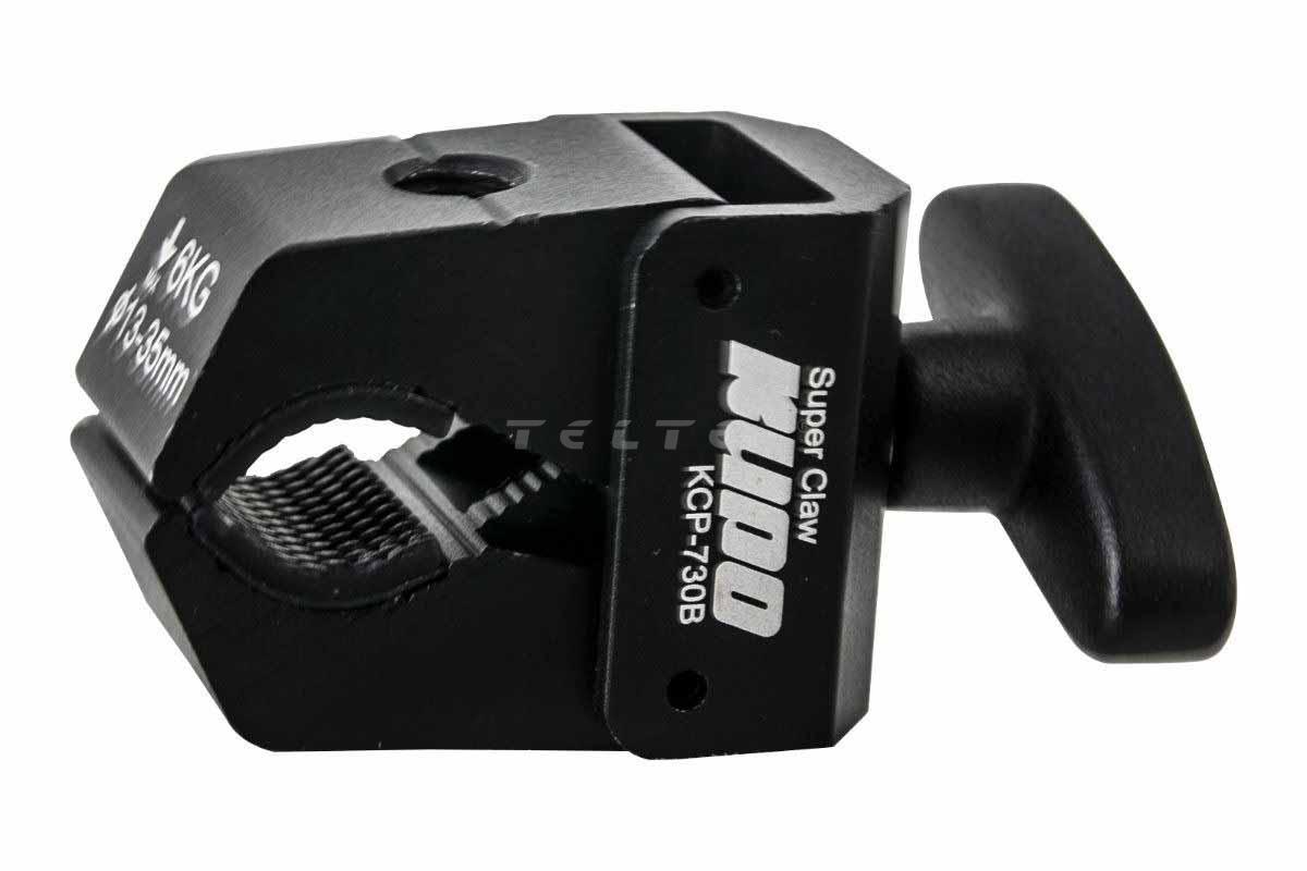 Die Kupo KCP-730B Super Claw Klemme ist eine leichte, kompakte Klemme mit nur 130 g Gewicht. Ausgestattet mit speziell entwickelten Polstern an den Klemmbacken sorgen diese für einen starken Halt an runden und flachen Flächen. Die Super Claw Clamp ist sowohl mit 1/4"- als auch mit 3/8"-Gewinden ausgestattet und ist ideal zur Befestigung von Kameras, Leuchten, Monitoren und Zubehör mit einem Gesamtgewicht von 6 kg.