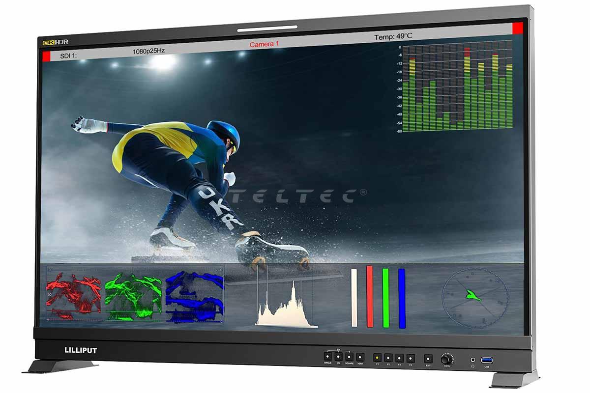 Der Lilliput Q31-8K ist ein 8K Broadcast-Monitor mit vier 12G-SDI-Ein- und Ausgängen, die zu einer Quad-Link 12G-SDI-Verbindung kombiniert werden können und vier 4K 60 Hz Videosignale in ein 8K 60 Hz Video umwandeln. Der Monitor bietet eine Helligkeit von 350 Nits sowie 3D-LUT Support. Der 31,5" Monitor bietet zudem einen 12G-SFP-Glasfasereingang*, der das Monitoring in Broadcast-Qualität ermöglicht, und verfügt über zahlreiche Funktionen zu denen HDR, Waveform, Vectorscope und False Color zählen. Zur Fernsteuerung des Monitors sind eine LAN-, RS422- und GPI-Schnittstelle integriert, um einen Computer anzuschließen und die gewünschten Konfigurationen vorzunehmen.