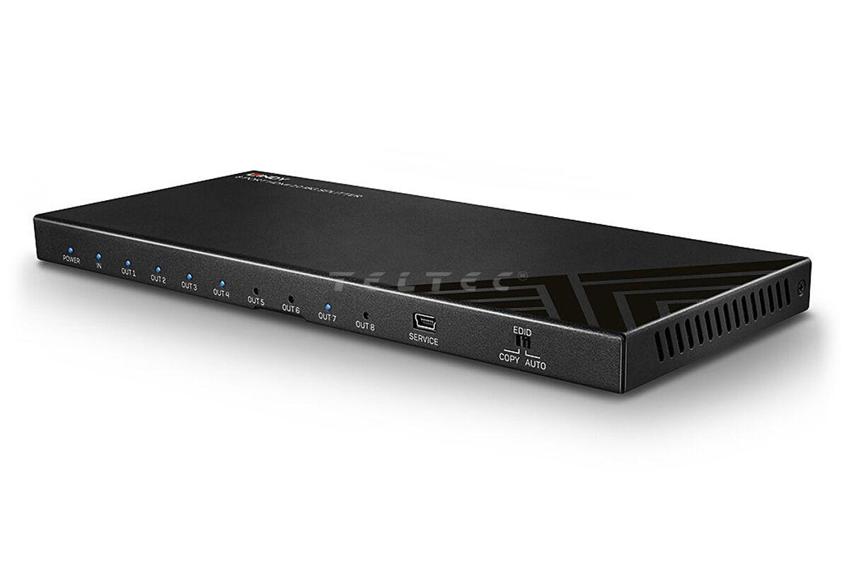 - Verteilt ein HDMI Eingangssignal auf acht HDMI Ausgänge