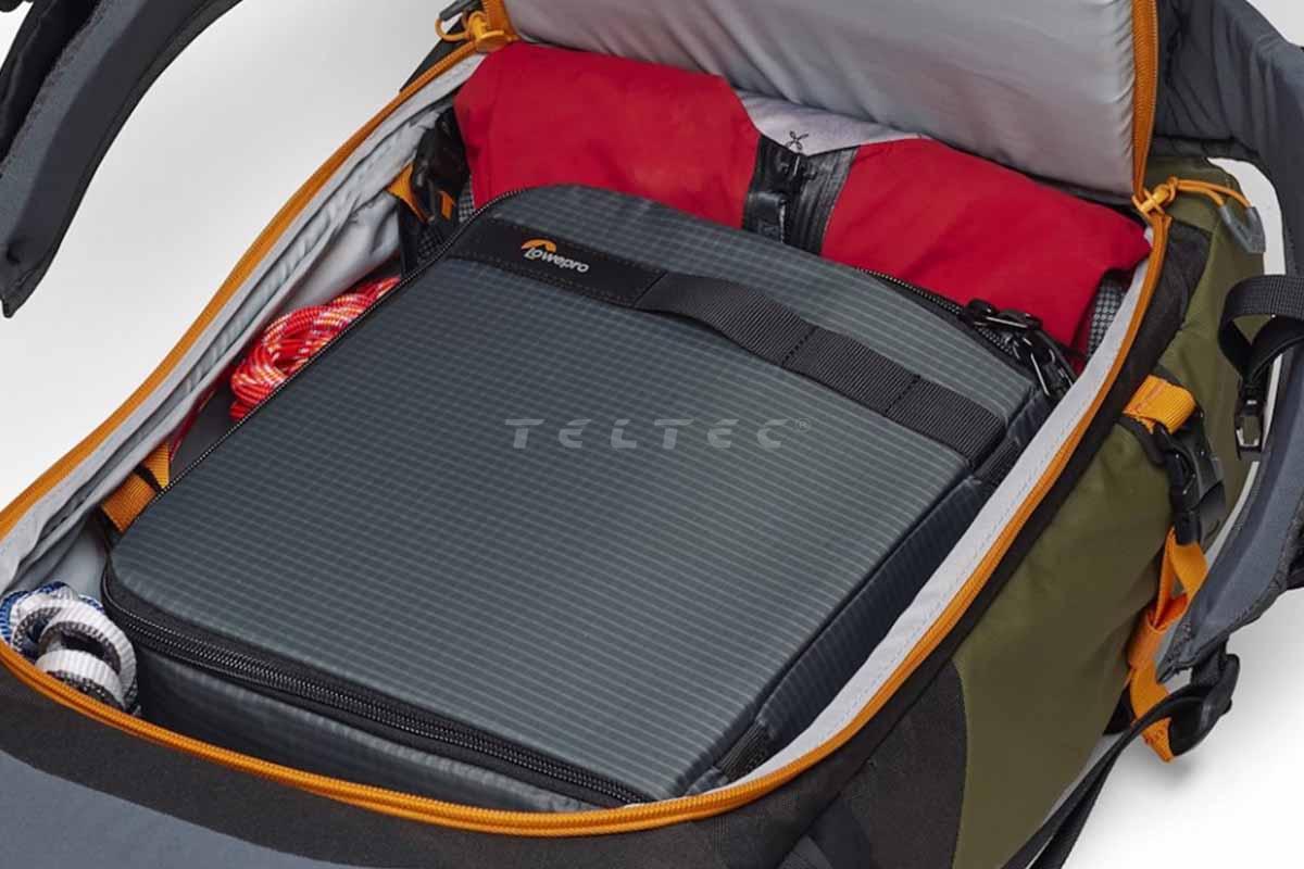 Die Lowepro GearUp PRO Kamerabox XXL II ist eine Kameratasche, die zusätzlich als Organizer fungiert. Sie bietet Platz für eine spiegellose oder DSLR-Kamera mit einem angeschlossenem Objektiv bis 70/20mm f/2.8., zwei zusätzlichen Objektiven und weiterem Zubehör. Die Box hat zwei Öffnungen, sodass sie entweder an der Vorder- oder an der Oberseite Zugang zum Equipment bietet. Darüber hinaus ist die Kompatibilität zum GearUp PRO Gurtsystem gegeben, um verschiedene Tragekonfigurationen zu ermöglichen.
