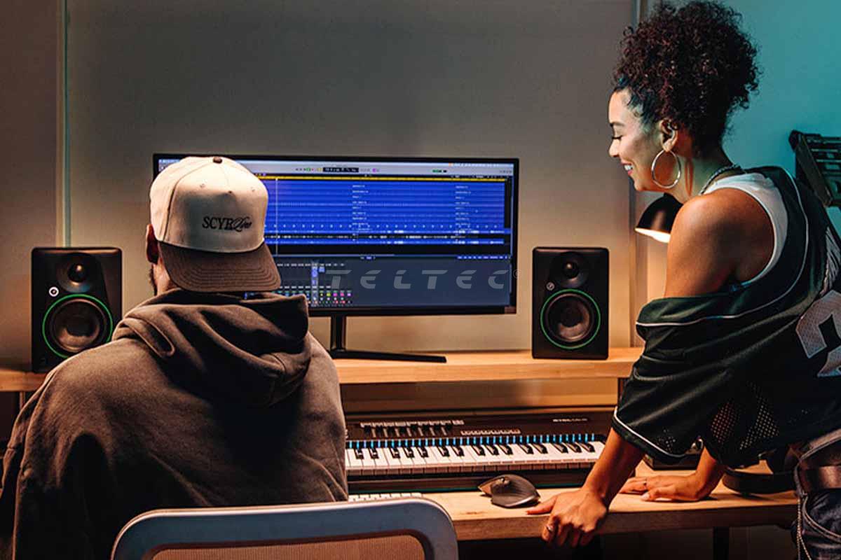 Die Mackie CR3.5 (Paar) 3.5" Powered Studio Monitors mit Tone Control und Bluetooth® sind aktive Studiomonitore und bieten den klaren, präzisen Sound, den man zum Produzieren und Aufnehmen von Musik benötigt. Mit dem Klangregler ganz nach links gedreht erhältt man einen ausgeglichenen Frequenzgang für das Abhören und Mischen. Dreht man den Klangregler nach rechts, erhält man mehr Bass und Glanz. Über den Positionsschalter wechselt man zwischen den Modi für den Betrieb als Desktop- oder Regal-Lautsprecher, um die CR3.5 für den jeweiligen Standort zu optimieren. Der Desktop-Modus empfiehlt sich für das Hören im Nahfeld (z.B. im Studio), während der Modus als Regal-Lautsprecher für das Hören in größerer Entfernung (z.B. vom Sofa aus) gedacht ist.