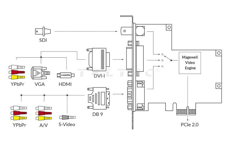 Die Magewell Pro Capture AIO ist eine Video-In-Karte mit 3G-SDI / HD-SDI / SDI / DVI 1.0 / HDMI 1.4a / VGA / FBAS / Y/C / Komponenten Anschluss.