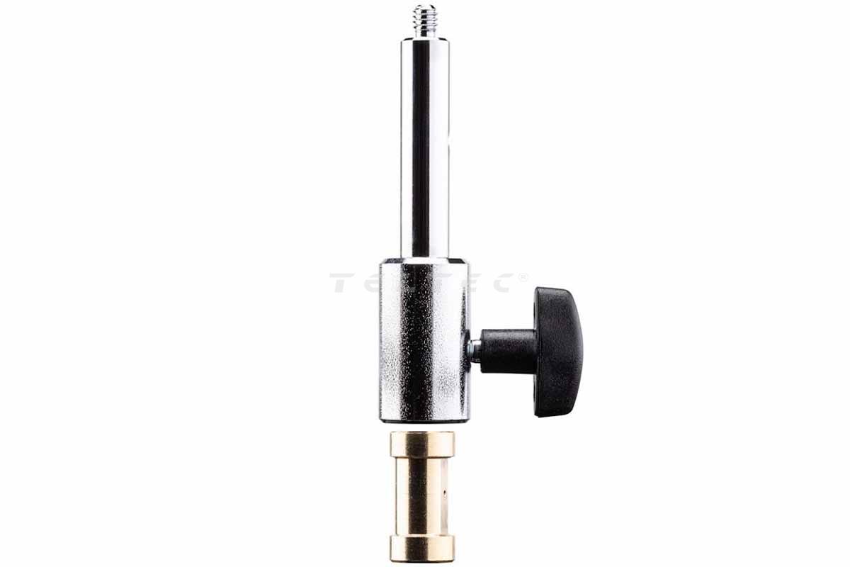 - Für einen Broncolor Blitzkopf oder andere Beleuchtungsausrüstung, für die ein kleinerer Stift benötigt wird