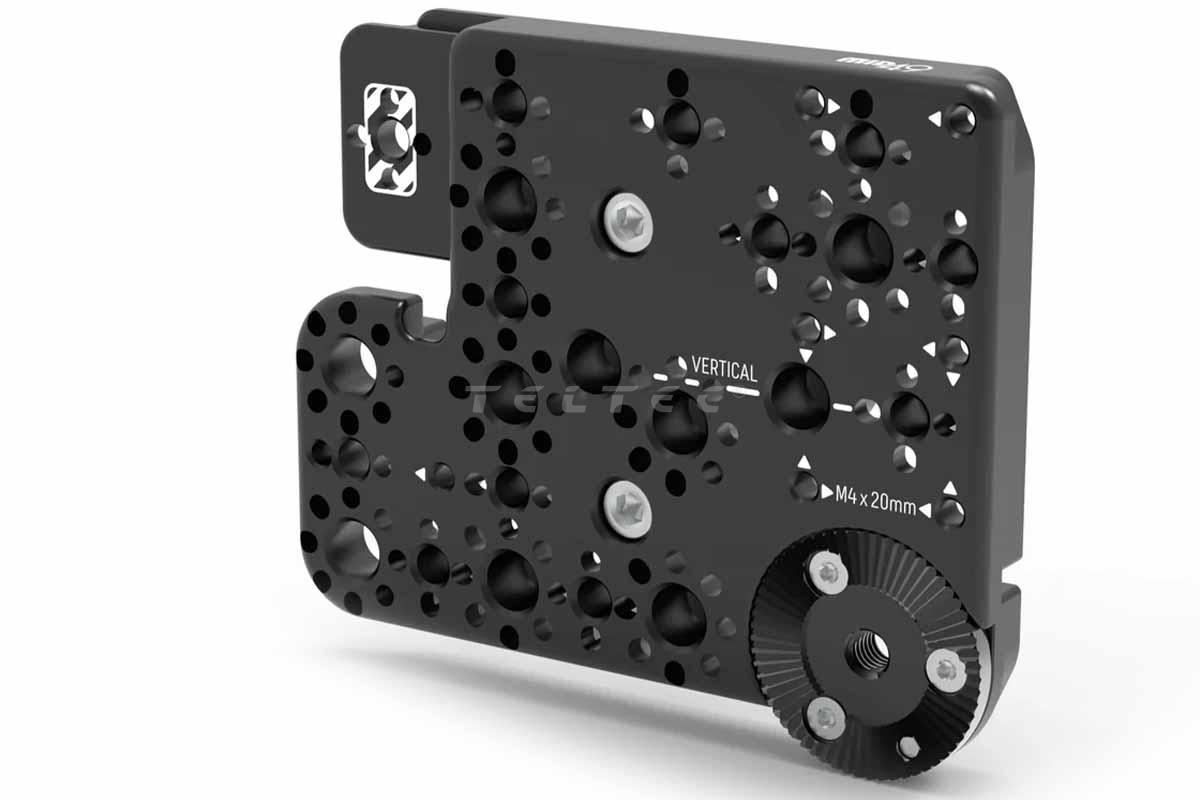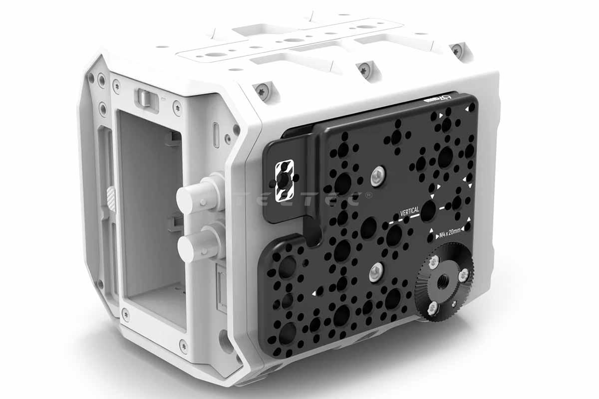 - Wird an der Oberseite der Kamera befestigt und bietet 1/4-20 und 3/8-16 Gewindebohrungen mit ARRI-Zubehörstiften, M4x20mm ARRI-Standard-Gewindebohrungen und Lüftungslöcher für den PYXIS-Lüfter