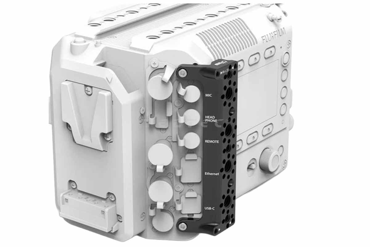 Das MID49 M49-CAG-FUJE-RGHT Right Rear Bracket (FUJIFILM GFX ETERNA 55) ist eine Halterung zur rückseitigen Montage am Kameragehäuse der Fujifilm GFX ETERNA, die die standardmäßige Anschlussabdeckung der Kamera ersetzt und zusätzliche 1/4"-20- sowie 3/8"-16-Gewindepunkte mit ARRI-Lokationsbohrungen bereitstellt. Zudem verfügt sie über M4x20 mm MAP-Montagepunkte, die sich ideal zur Befestigung von Single-Rod-Clamps und weiterem Zubehör eignen.