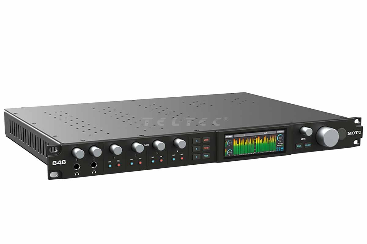 Das MOTU 848 ist ein professionelles 28 x 32 Thunderbolt-/USB-Audio-Interface für Mac, Windows und iOS. Mit modernster ESS Sabre32™-Technologie, AVB-Netzwerkfähigkeit und integriertem 64-Kanal-DSP-Mixer bietet es eine leistungsstarke Plattform für Studio- und Live-Anwendungen – von Mehrspuraufnahmen in 192 kHz bis hin zum flexiblen Standalone-Betrieb. Mit bis zu 256 Audiokanälen (128 In/128 Out über Thunderbolt/USB) und 60 simultanen physischen Kanälen liefert das Interface höchste Flexibilität. Vier hochwertige Mikrofonvorverstärker, zahlreiche Line-Ein- und Ausgänge, ADAT, Wordclock sowie umfassende DSP-Effekte machen das 848 zu einer zentralen Schaltstelle in jeder Produktionsumgebung.