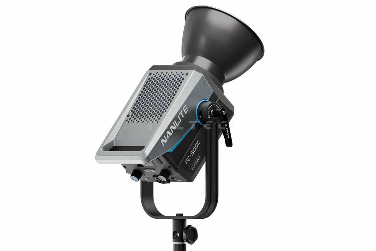 Die Nanlite FC-500C ist ein professioneller, stylischer Full-Color Reportage- und Studio-Scheinwerfer mit weißem Licht (variable Farbtemperatur 2700 – 7500 Kelvin), farbigem Licht (aus Farbspektrum oder durch additive Farbmischung oder vordefinierte Farbfilter/Gel-Filter) und besonderen, individuell anpassbaren Spezialeffekten. Der Scheinwerfer ist Dimmbar in 0,1 %-Schritten von 0 % bis 100 % und hat eine Lichtintensität von ca. 57050 Lux bei 1 Meter Entfernung.