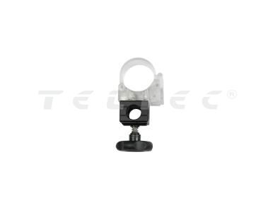 Rohrschelle mit transparenten Clipverschluss zur Befestigung von PavoTube Leuchten auf Stativen