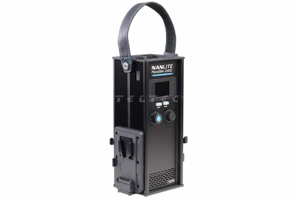 Die Nanlite PavoSlim 240C LED RGBWW Flächenleuchte ist eine zusammenklappbare 60 x 60 LED Flächenleuchte mit einer Ausgangsleistung von 260 W und einer Farbtemperatur von 2.700 K - 7.500 K, die individuell einstallbar ist. Die PavoSlim bietet eine Beleuchtungsstärke von bis zu 63.650 Lux bei 5.600 K auf einem halben Meter mit einer hohen Farbwiedergabequalität. Darüber hinaus sind 15 Beleuchtungseffekte, wie z.B. Blinken, Pulsieren, Gewittersimulation oder Kerzenlicht, und über 151 vorprogrammierte Farb- und Gelfilter implementiert. Die Lichtintensität lässt sich von 100 % auf 0 % in 1 %-Schritten einstellen. Gesteuert wird die Flächenleuchte über die separate Steuerbox, per Bluetooth über die NANLINK App, per 2,4 GHz Funk oder DMX/RMD. Die Stromversorgung erfolgt per Wechselstrom oder via optionalen V-Mount Akku.