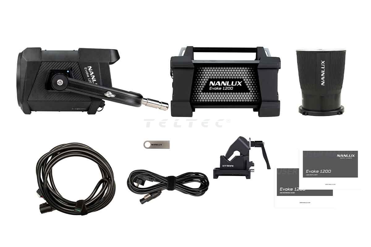 Die NANLUX Evoke 1200 ist ein LED Studio-Scheinwerfer mit 1,2 kW und einer Vielzahl an Konfigurationsmöglichkeiten. Die Leuchte liefert ein natürlich aussehendes Licht, verbaut in einem robusten Gehäuse, das Schutz vor Regen bietet. Zur Steuerung stehen kabelgebundene und drahtlose Optionen über die NANLINK App, DMX/RDM, Bluetooth und LumenRadio TimeTwo zur Verfügung. Die Evoke 1200 hat einen NL-Mount und ist mit zahlreichen Lichtformern, Modifikatoren und weiterem Zubehör kompatibel. Im Lieferumfang des ST-Kit ist zudem ein Yoke, Reflektor, Stativklemme sowie ein Transportkoffer enthalten.