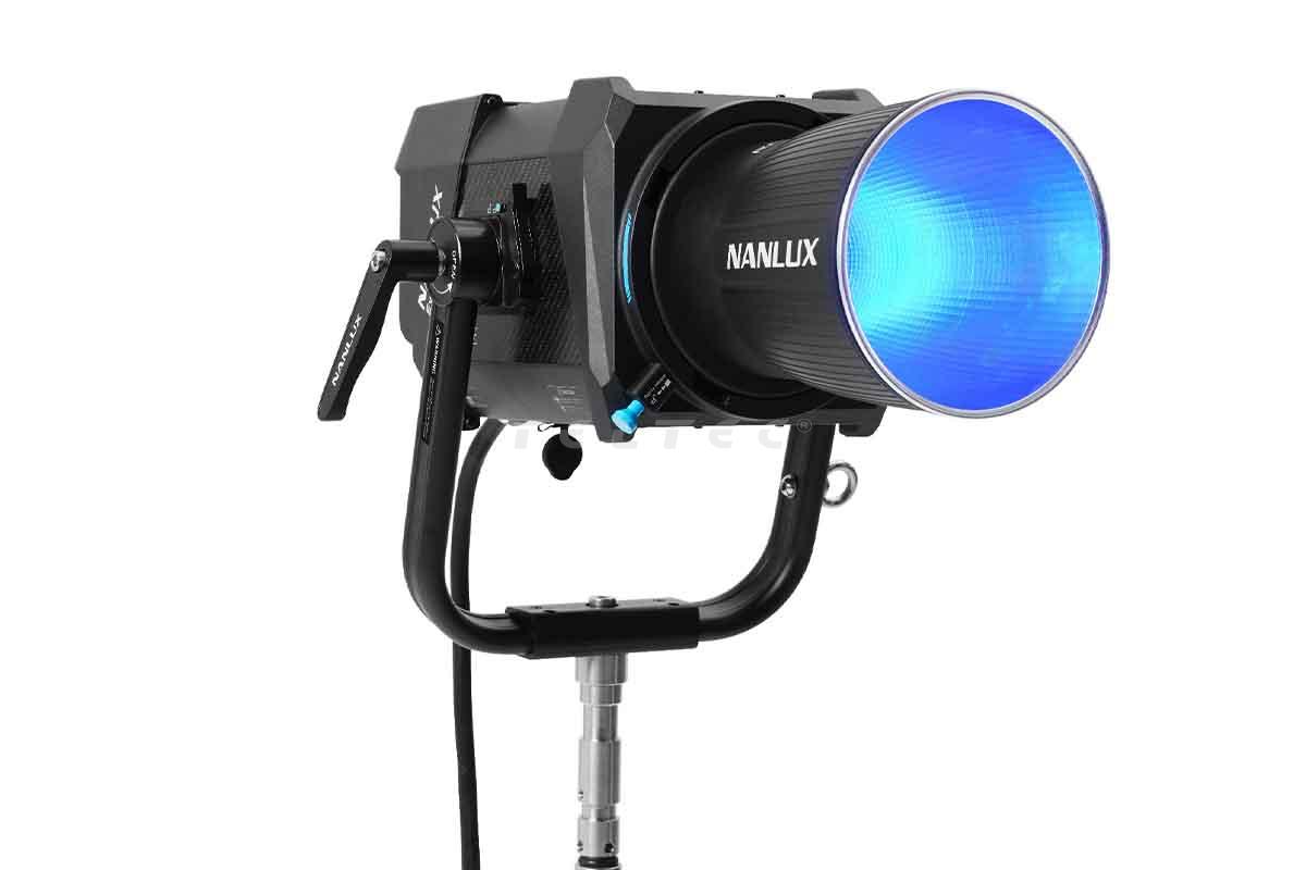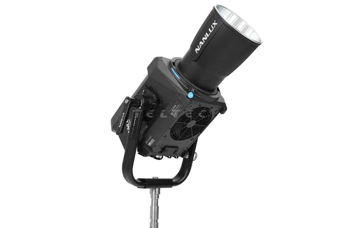 Die NANLUX Evoke 900C ist ein leistungsstarker Studio-Scheinwerfer mit einem RGBLAC-Farbmischsystem und Art-Net/sACN-Steuerungen. Der Vollfarb-LED-Strahler verfügt über einen sehr weiten Farbtemperaturbereich von 1.800 K bis 20.000 K, der einen cinematischen Look bietet. Darüber hinaus befinden sich auf der Rückseite 4 Buttons, 3 Drehregler und ein 3,5" TFT-Bildschirm, die für eine benutzerfreundliche Bedienung sorgen. Neben der kabelgebundenen Steuerung Art-Net/sACN, sind die DMX/RDM-Steuerung sowie die drahtlosen Lösungen mit der NANLINK App und LumenRadio CRMX integriert. Verschiedene Licht-Modi, wie dem CCT-Modus mit G/M-Anpassung, erweiterter HSI-Modus, RGBW-, XY-Koordinaten, dem GEL-wie auch dem DMX-Modus, geben dem Nutzer eine Vielzahl an Möglichkeiten die Farben beliebig anzupassen. Mit der IP55-Schutzklasse wird ein robustes und wetterfestes Design geboten. Darüber hinaus ist eine einstellbare Lüftersteuerung mit den Modi: SMART, FULL SPEED, LOW SPEED und OFF mit einem Geräuschpegel von 25 dBA im Smart-Modus verbaut, sodass sowohl für die Wärmeabgabe als auch für die die Geräuschreduzierung bei voller Leistung gesorgt wird. Im Lieferumfang des ST-Kit ist ein Yoke, Reflektor, eine Quick Release Klemme, Fernbedienung sowie ein Transportkoffer enthalten.