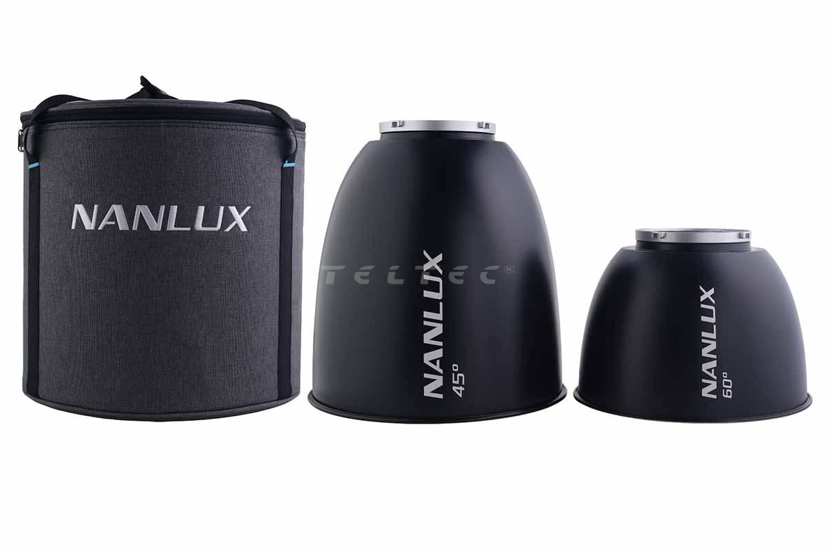 Mit dem NANLUX RF-NL-L-45/60-KIT Reflektor-Set 45° und 60° erreicht man, dank der hochreflektierenden Materialien und der optimierten Form eine besonders hohe Lichtausbeute, eine deutlich höhere Beleuchtungsstärke und eine größere Reichweite mit einer NANLUX Evoke 2400B und Evoke 5000B Leuchte.