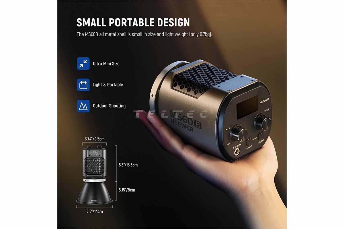 Das Neewer MS60B ist ein ultra-kompaktes Bi-Color Dauerlicht und ideal für Video- und Fotoproduktionen, die eine flexible und mobile Beleuchtung erfordern. Mit einstellbarer Farbtemperatur von 2700 K bis 6500 K und einem hohen CRI von über 97 liefert sie eine akkurate Farbwiedergabe. Außerdem ist die MS60B leicht und tragbar, sodass sie sich außer für den Einsatz im Studio auch ideal für unterwegs eignet. Sie lässt sich per integriertem Bedienfeld oder vom Smartphone steuern lässt, Sie ist mit Bowens-Zubehör kompatibel, was eine breite Palette an Lichtformungsoptionen ermöglicht.