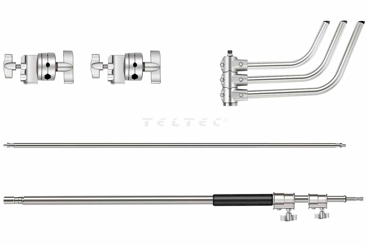 Das Neewer SC320 ist ein äußerst robustes und vielseitiges Premium C-Stand Galgenstativ. Hergestellt aus rostfreiem, verchromtem Edelstahl, bietet es eine hohe Stabilität und Langlebigkeit. Mit einer maximalen Tragkraft von 20 kg eignet es sich für den Einsatz mit schweren Ausrüstungen. Die stufenlos einstellbare Höhe von 153 bis 320 cm ermöglicht eine präzise Anpassung, unterstützt durch eine 3-Segment Mittelsäule (Ø 30 mm, 35 mm, 40 mm) und eine integrierte Federdämpfung, die eine sanfte Höhenverstellung gewährleistet. Die drei um die Mittelsäule drehbaren Stativbeine sorgen für Flexibilität und stabile Standfestigkeit. Der Schwenkarm hat eine Länge von 127 cm und trägt bis zu 8 kg, mit 1/4“ und 3/8“ Gewindeschrauben auf beiden Seiten für vielseitige Anwendungsoptionen. Der Aufbau ist dank der Federbolzen-Arretierung schnell und einfach. Zwei ultra-robuste Griffköpfe (jeweils 590 g) sorgen für zusätzliche Sicherheit und Stabilität bei der Verwendung.